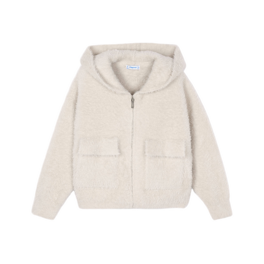 Furry Zip-Up Hoodie - Almond