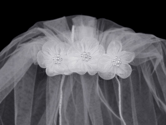 18" Veil W/ Organza Flowers - T47