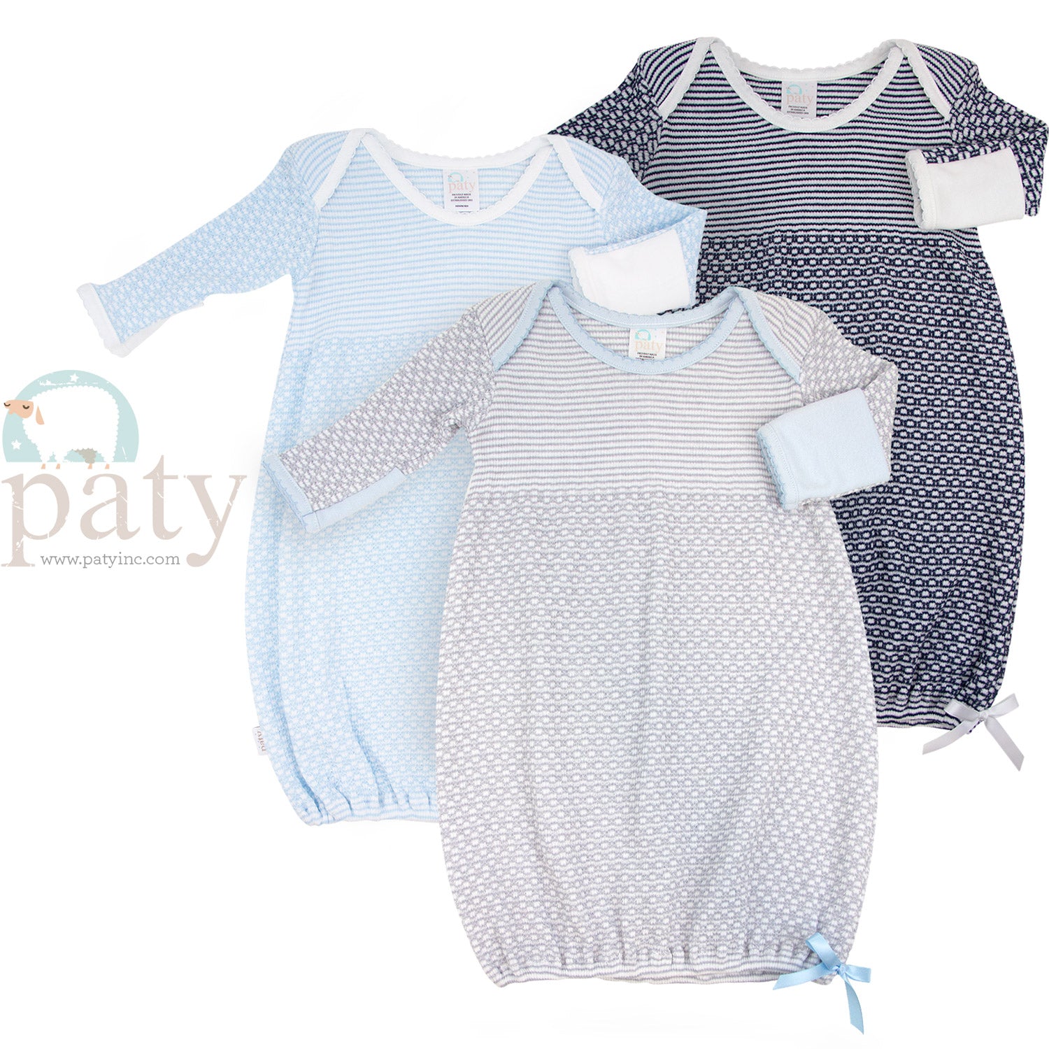 Dress to impress in Indulge your little one in luxury with the Overlap Shoulder Gown! This stylish and comfortable gown from PATY features a unique overlap shoulder design, perfect for quick and easy changes. Treat your baby to the best with their high-quality brand.