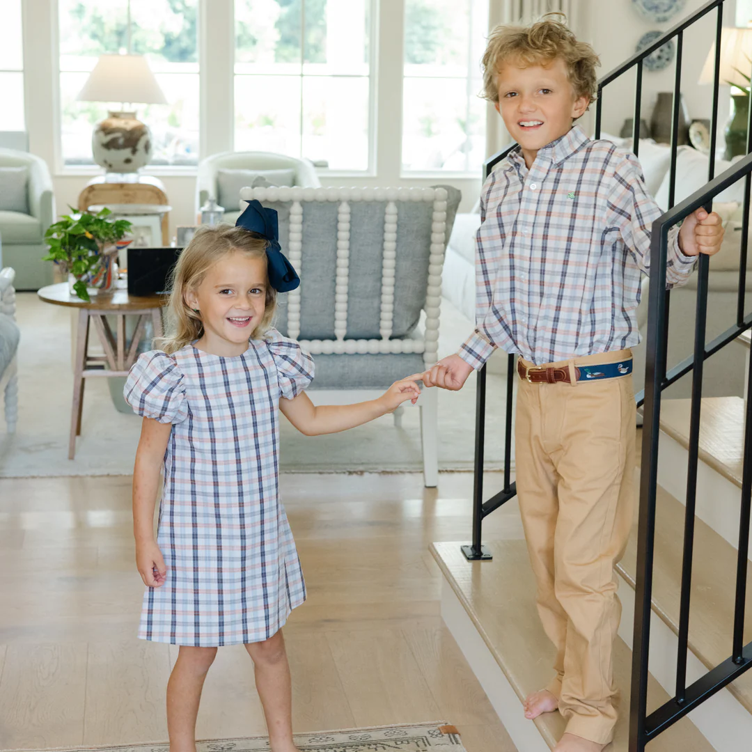 A nod to heritage with a modern twist, the Aline Dress in Charleston Plaid is a timeless staple for crisp fall mornings and cozy family gatherings.