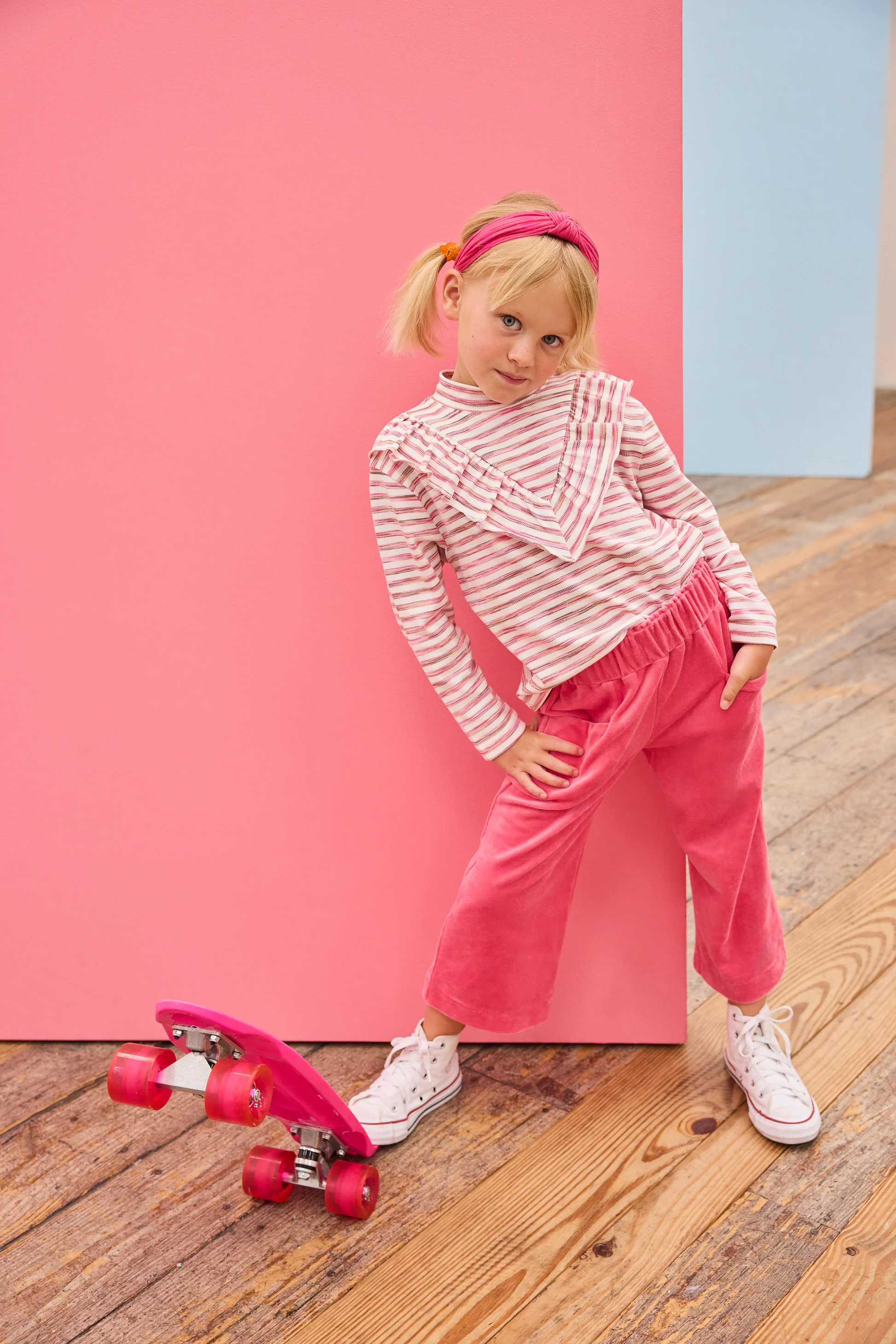 Sweet and cozy! The Aspen Top is an adorable striped piece with an eye-catching ruffled collar. Your girl will feel confident and playful in the Aspen Turtleneck.