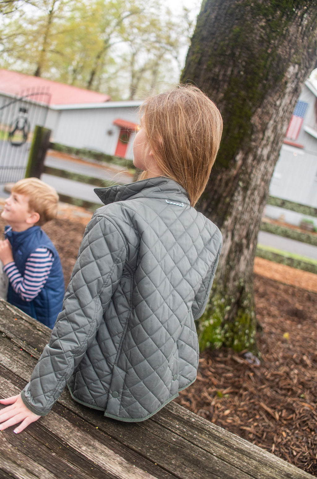For the kid who loves wide-open spaces and muddy adventures, the Kids Quilted Barn Jacket in Fly Fishing Green is a countryside classic reimagined for modern explorers. Designed with a tailored fit, diamond-quilted finish, and rugged detailing, this jacket brings cozy warmth and timeless style from pumpkin patch to pasture.