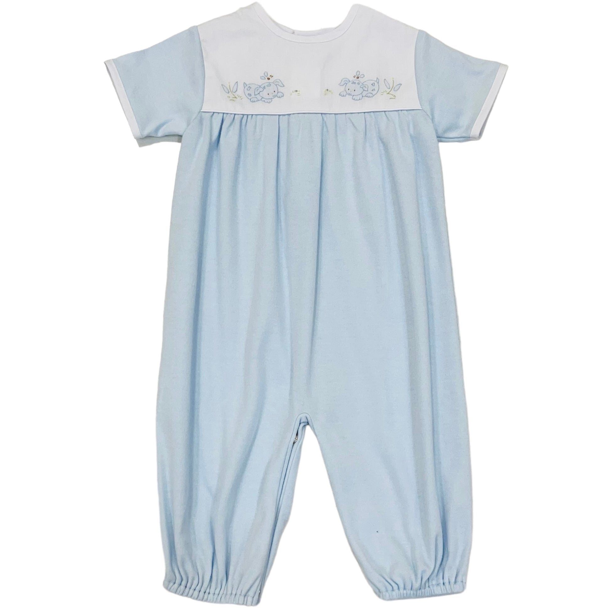 Get your little one ready for some fun in this Blue & White Dog Converter. Made for baby boys, this converter features a playful and adorable embroidered dog design. Easily switch between a gown and full outfit with this versatile piece.
