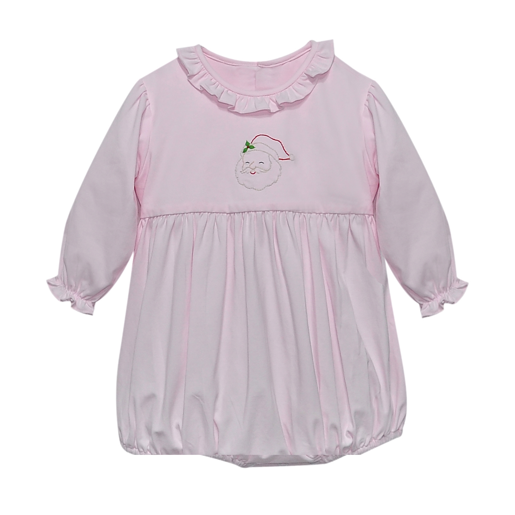 Designed with heirloom charm and festive cheer, this Baby Sen long-sleeve bubble wraps your little one in a sleighful of seasonal sweetness. A ruffled collar adds vintage polish, while the embroidered Santa face — complete with a rosy nose and holly-topped hat — brings joyful whimsy to every twirl. Elastic cuffs and a gathered waist make it comfy enough for cocoa sipping and picture-perfect for holiday snapshots.
