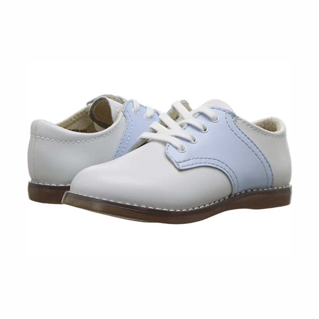 CLASSIC TWO-TONE BLUCHER LEATHER SADDLE OXFORD FEATURING LACE CLOSURE. OFFERED IN MATTE COLORS; SIZES RANGING FROM 3.0 INFANT - 1.0 YOUTH.
