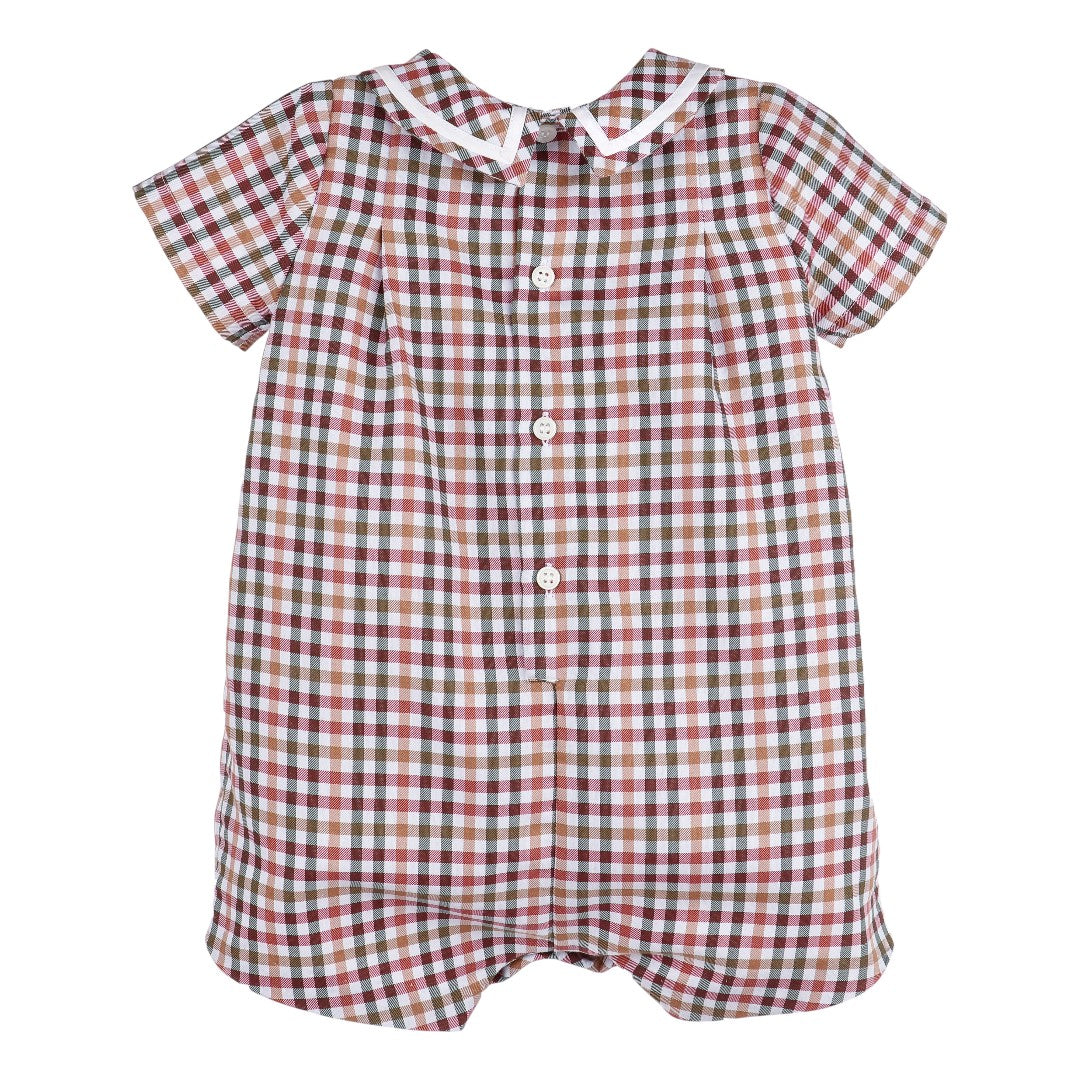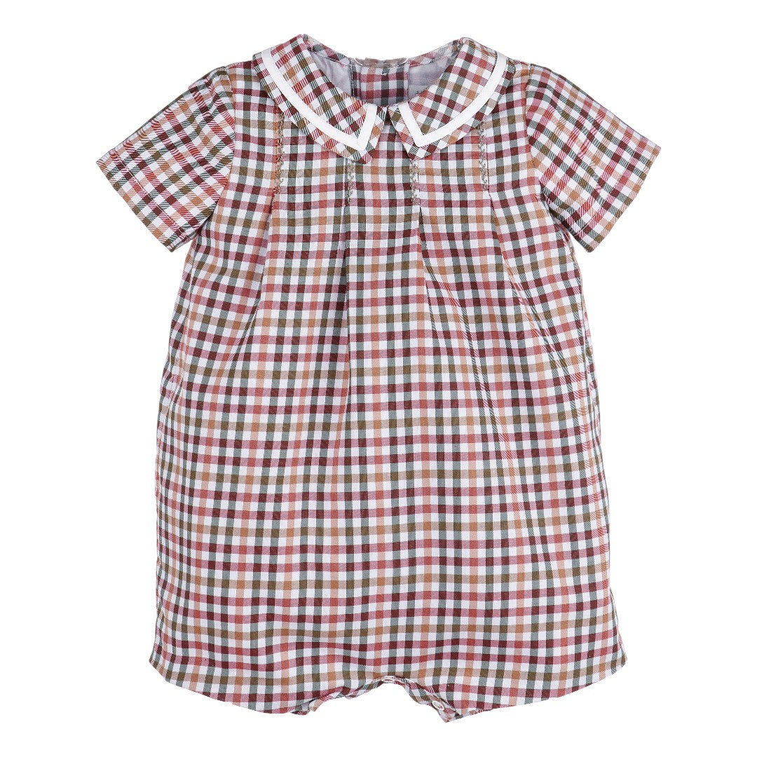 Cozy up to fall with this charming Cider Checks Boy Bubble from Sophie & Lucas. Featuring a crisp Peter Pan collar, pleated front, and a rich checkered pattern in cider-inspired hues, it’s a timeless look for your little gent. Soft gathers and easy snaps make it as practical as it is picture-perfect—ideal for pumpkin patch strolls, family photos, and festive gatherings.