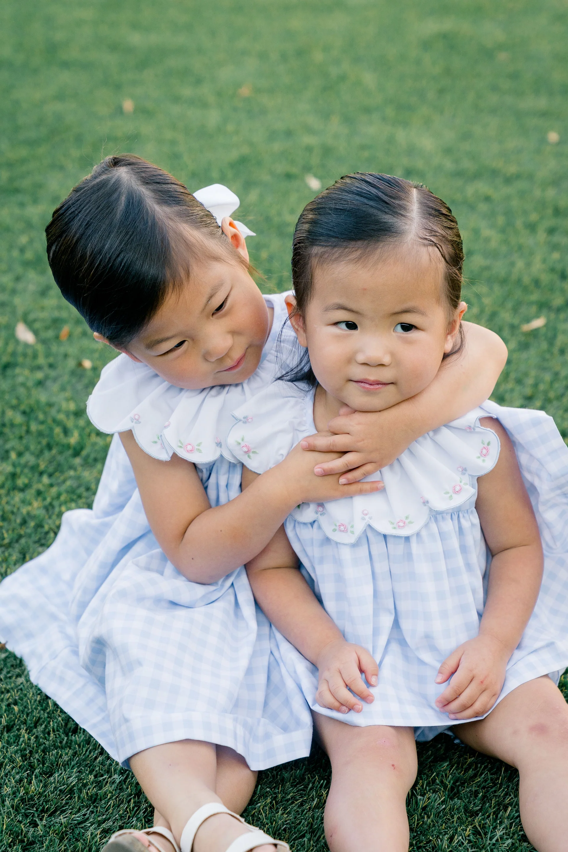 There's just something about the blue and white check Colby collection that is precious in summertime pictures and we just adore the embroidery detail.