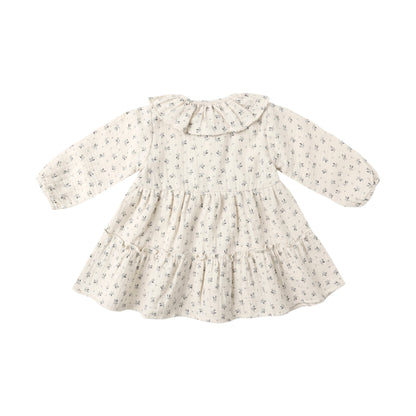 This tiered long sleeve dress features a sweet ruffle collar and button-down front for an effortlessly charming look. Coordinating bloomers included with sizes 0-3M - 2-3Y.