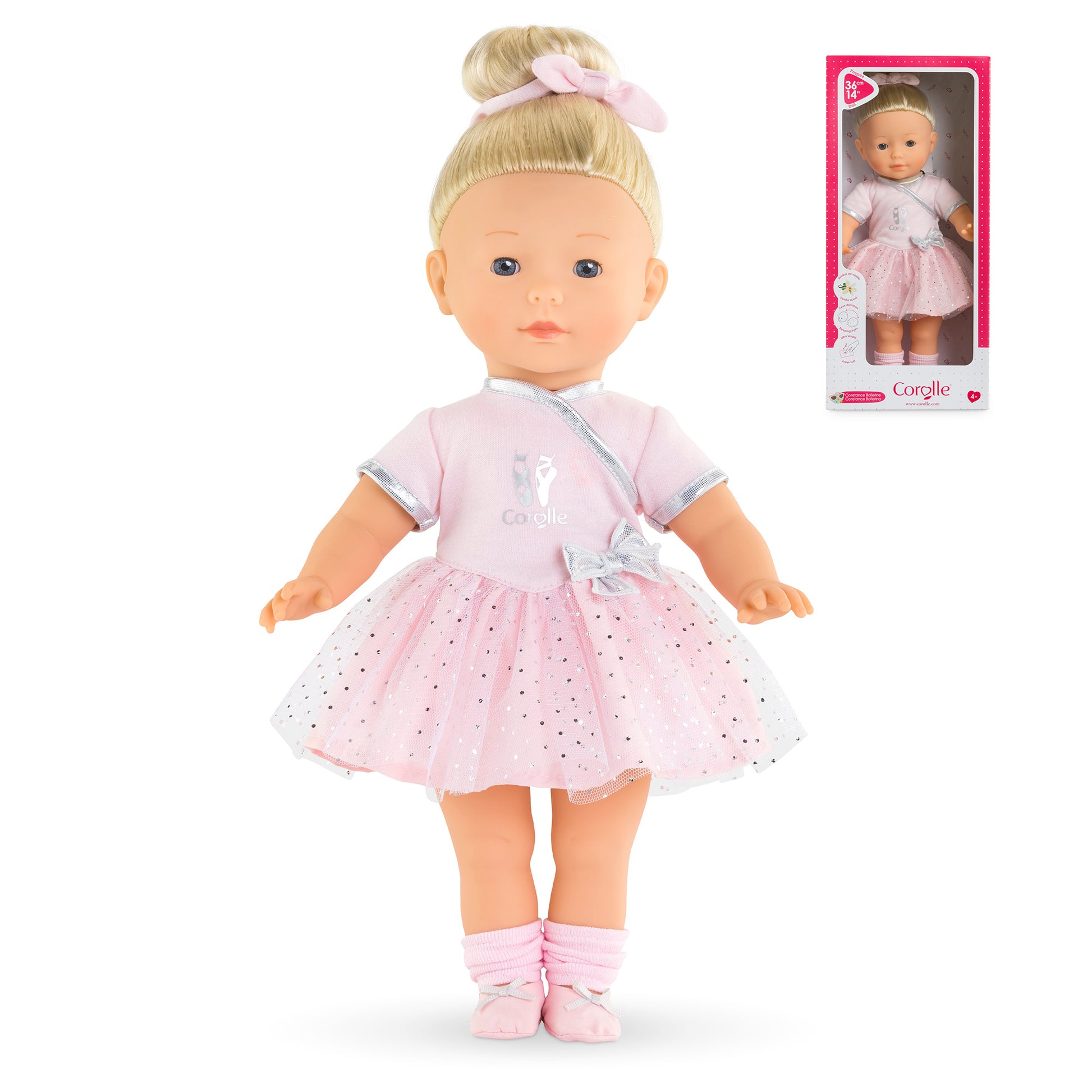 Constance Ballerina is dressed and ready to go to ballet class with her friends. From the ma Corolle collection, Constance is 14-inches tall, has a soft, ""underwear effect"" body and silky blonde hair that is styled in a ballerina-perfect topknot. Her head, arms and legs are made of soft-to-the-touch vinyl that is delicately scented with vanilla -- a Corolle signature, and her blue sleepy eyes close when she lays down for a nap or at bedtime, just like real little girls. ma Corolle: My doll, my stories! Ages 4 and up. "