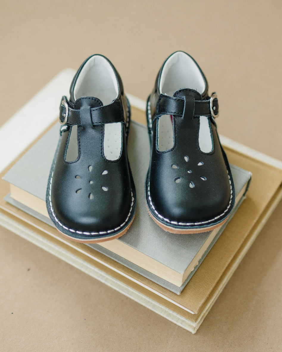 Joy, with its t-strap and perforated design, is an impeccable timeless shoe. With our array of colors, this mary jane can become your child's favorite for any special or casual occasion!