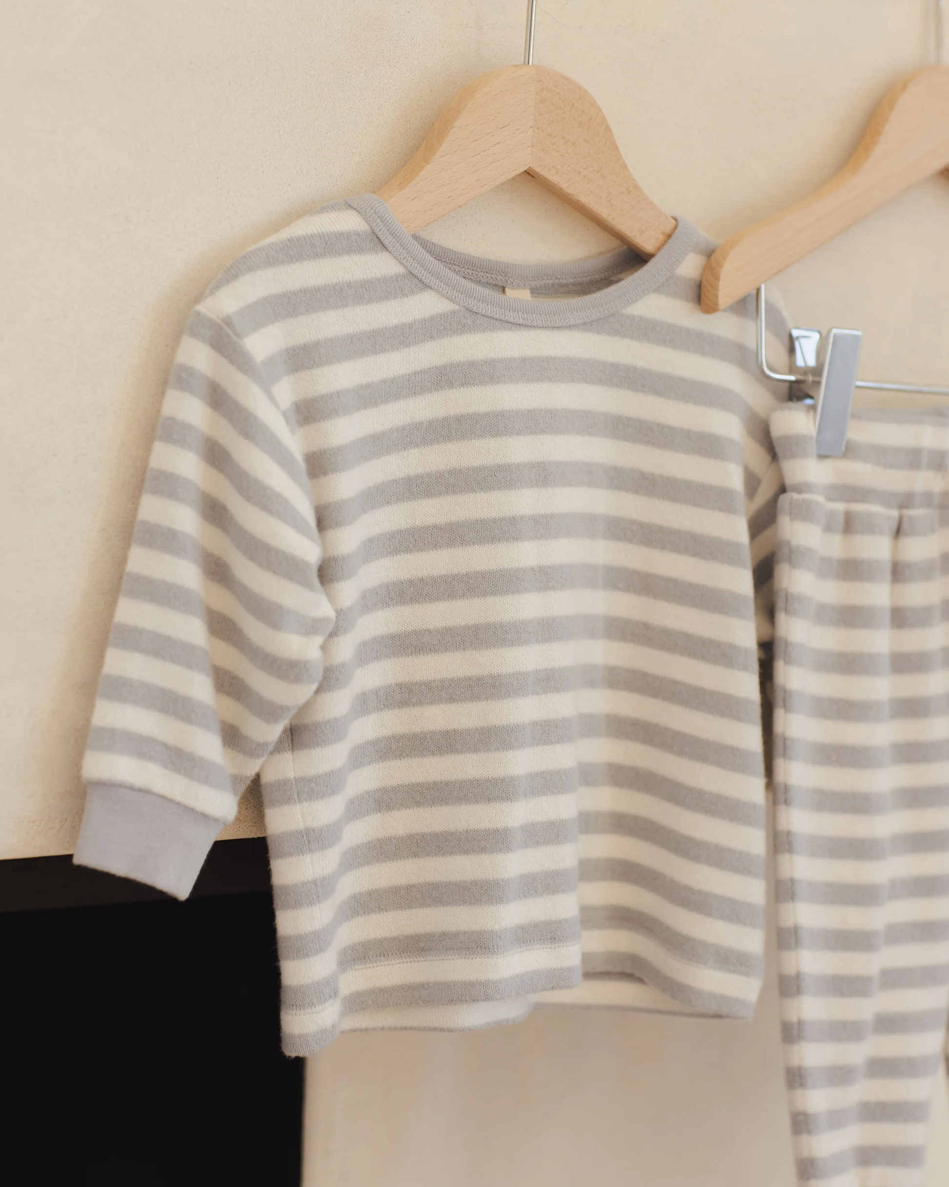 Quincy Mae's Cozy Set features a relaxed long sleeve and drawstring pants with ribbed trim—an easy, snug look for cooler days.
