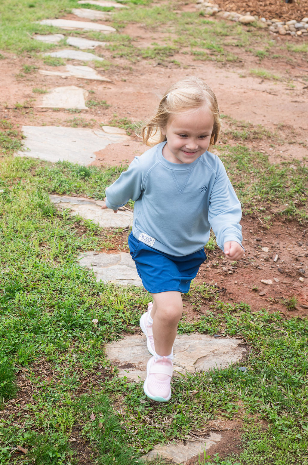 Keep him cozy and polished in Prodoh Kids Crew Control Sweatshirt in Faded Ashley Blue. Designed for school days, playdates, and picture perfect moments, this versatile pullover features super soft, lightweight cotton French Terry fabric. Layer over a button down shirt or pair with our joggers. Plus, it's proudly made in Peru, known for its high-quality cotton production.
