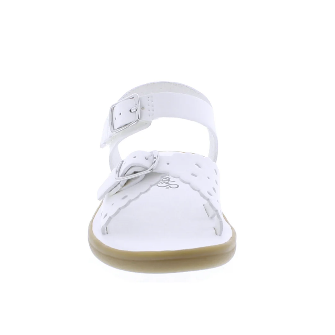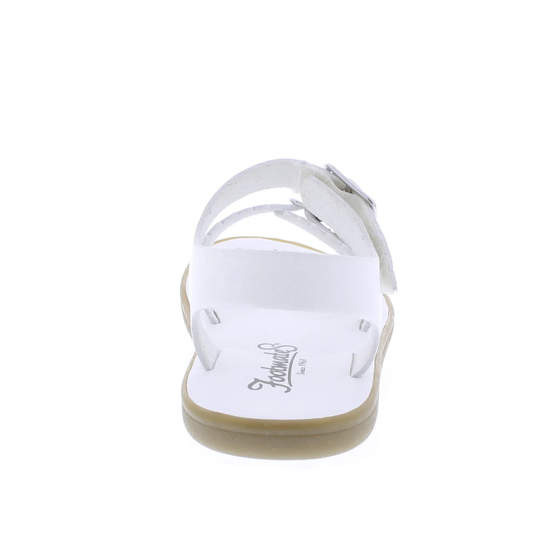 OPEN-TOE, OPEN-HEEL MICROFIBER SANDAL FEATURING TRUE-BUCKLE FOREFOOT STRAP WITH DECORATIVE TEAR-DROP PERF DESIGN AND HOOK-AND-LOOP ANKLE STRAP WITH DECORATIVE BUCKLE. OFFERED IN MATTE AND METALLIC COLORS; SIZES RANGING FROM 1.0 INFANT - 3.0 YOUTH.