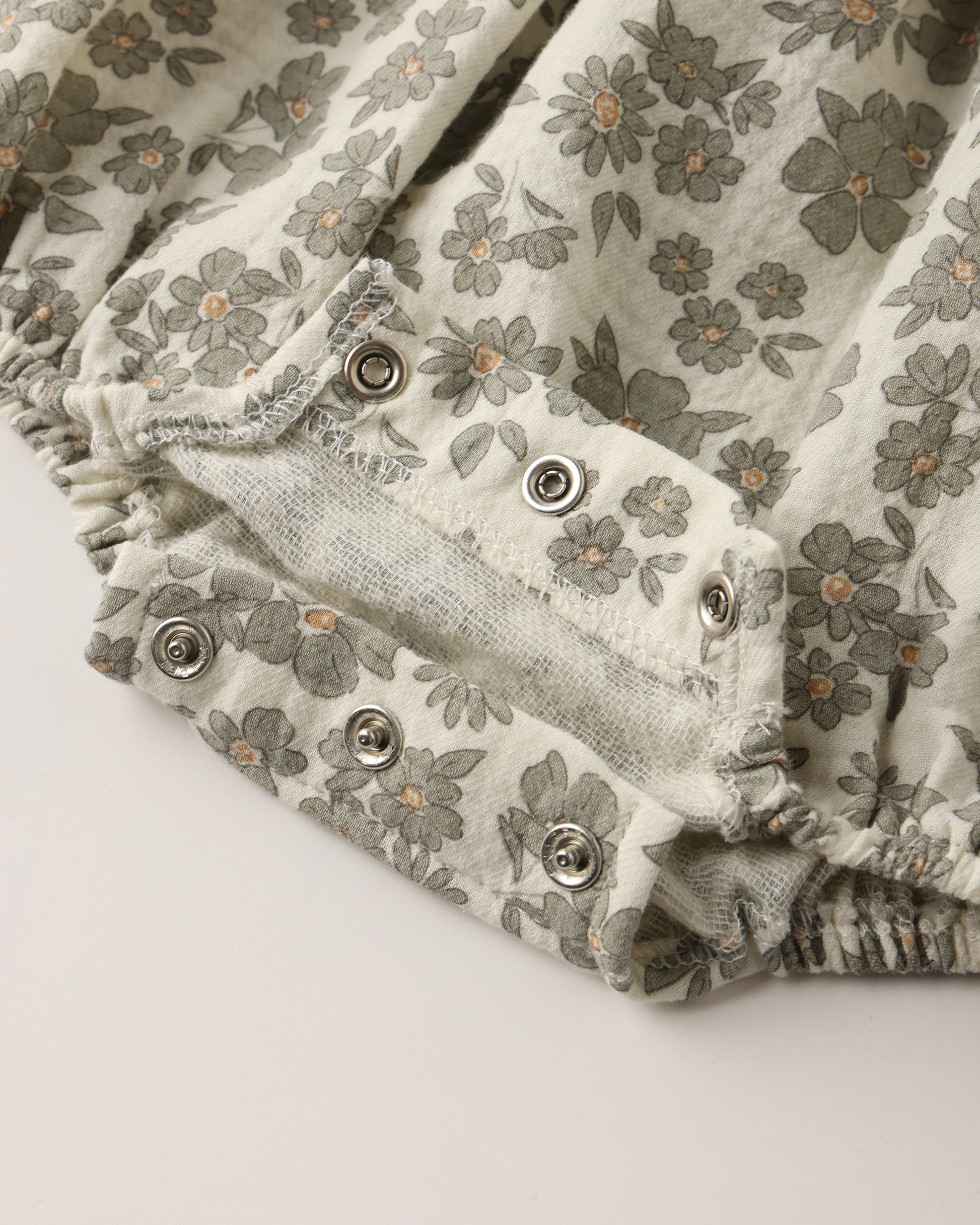 Quincy Mae's Eden Romper features delicate smocking across the chest, gathered ruffle details at the wrists, and a sweet ruffled neckline—an effortlessly charming piece for your little one.