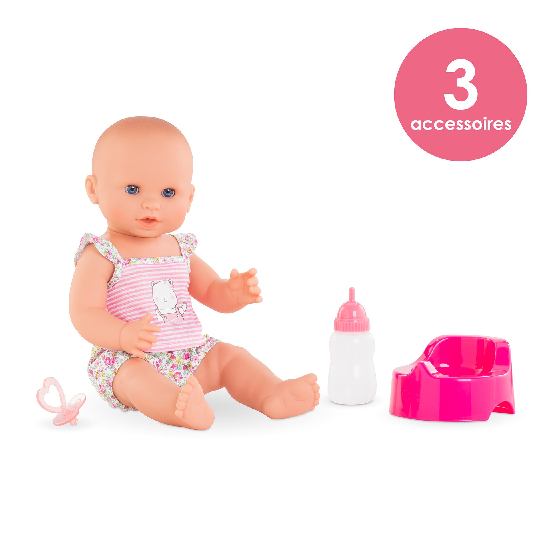 Emma Drink-and-Wet Bath Baby has a whole collection of mon grand poupon Corolle clothes and accessories to let your child practice everyday skills and invent all sorts of different games.