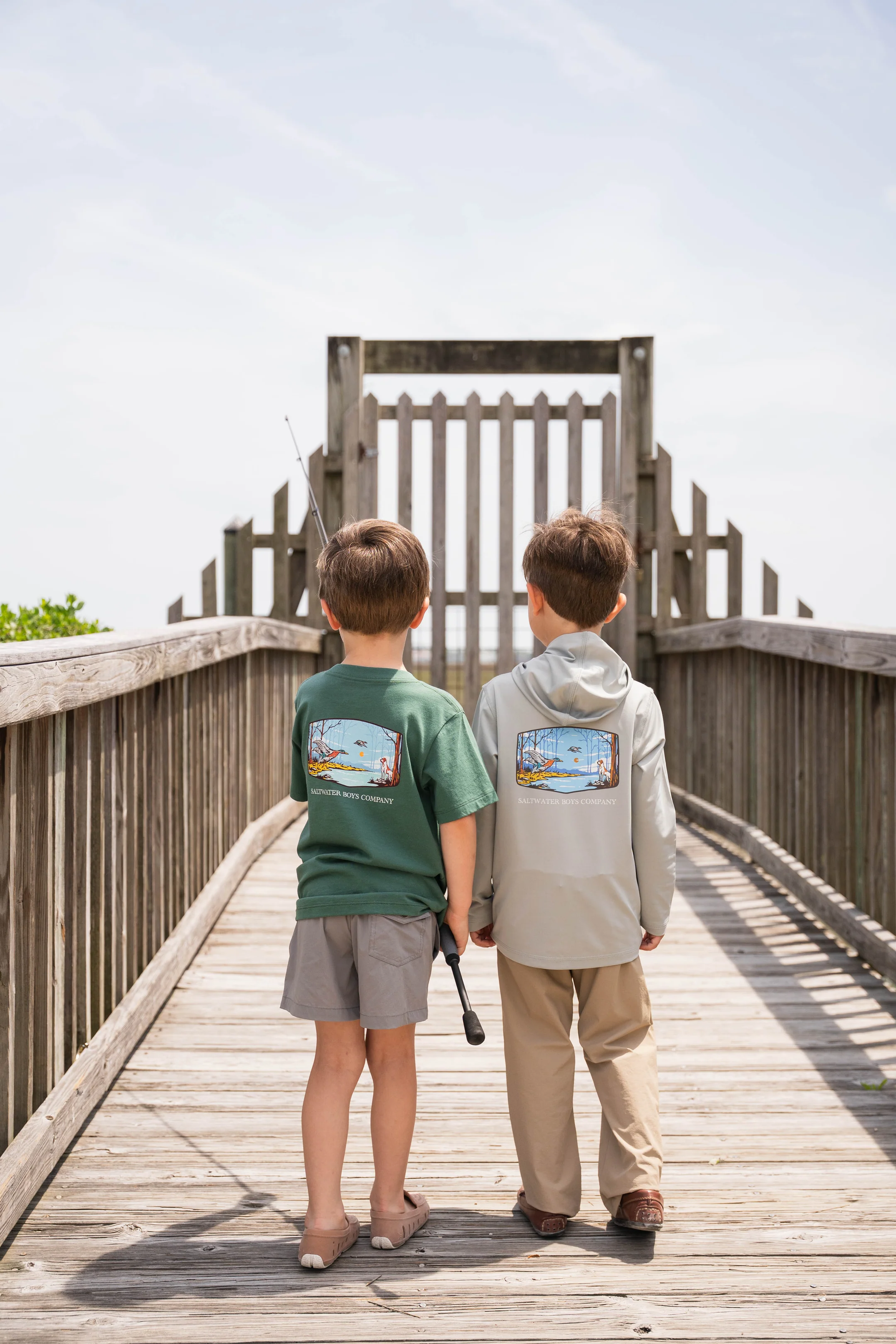 Explore the outdoors in comfort with the Field & Stream Short Sleeve Graphic Tee in Green. Made from 100% Peruvian cotton and pre-washed for exceptional softness, this pocket tee combines durable style with all-day coziness for your little adventurer.
