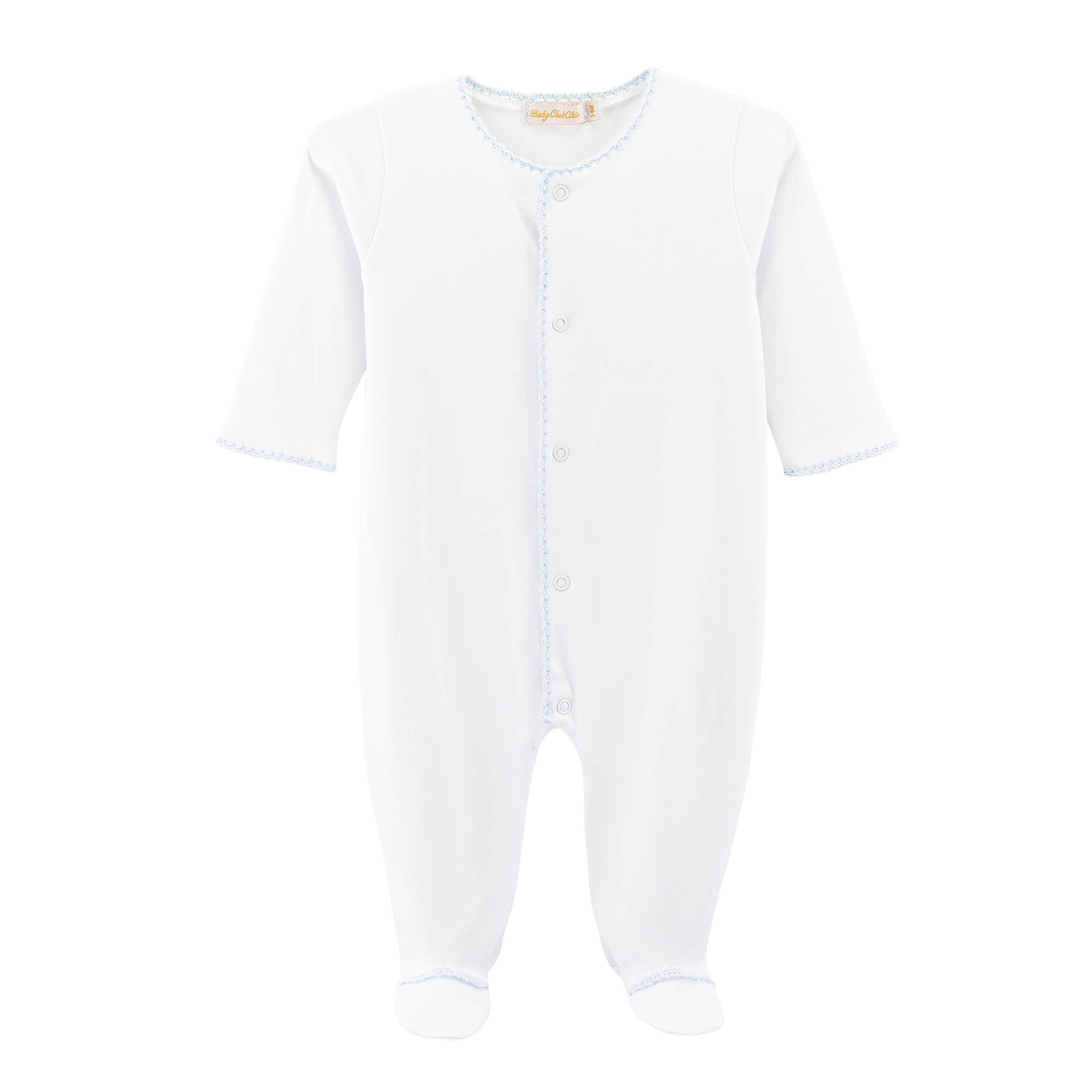 Beautiful and delicate design, our sweet footie is made with 100% Peruvian Pima Cotton interlock.