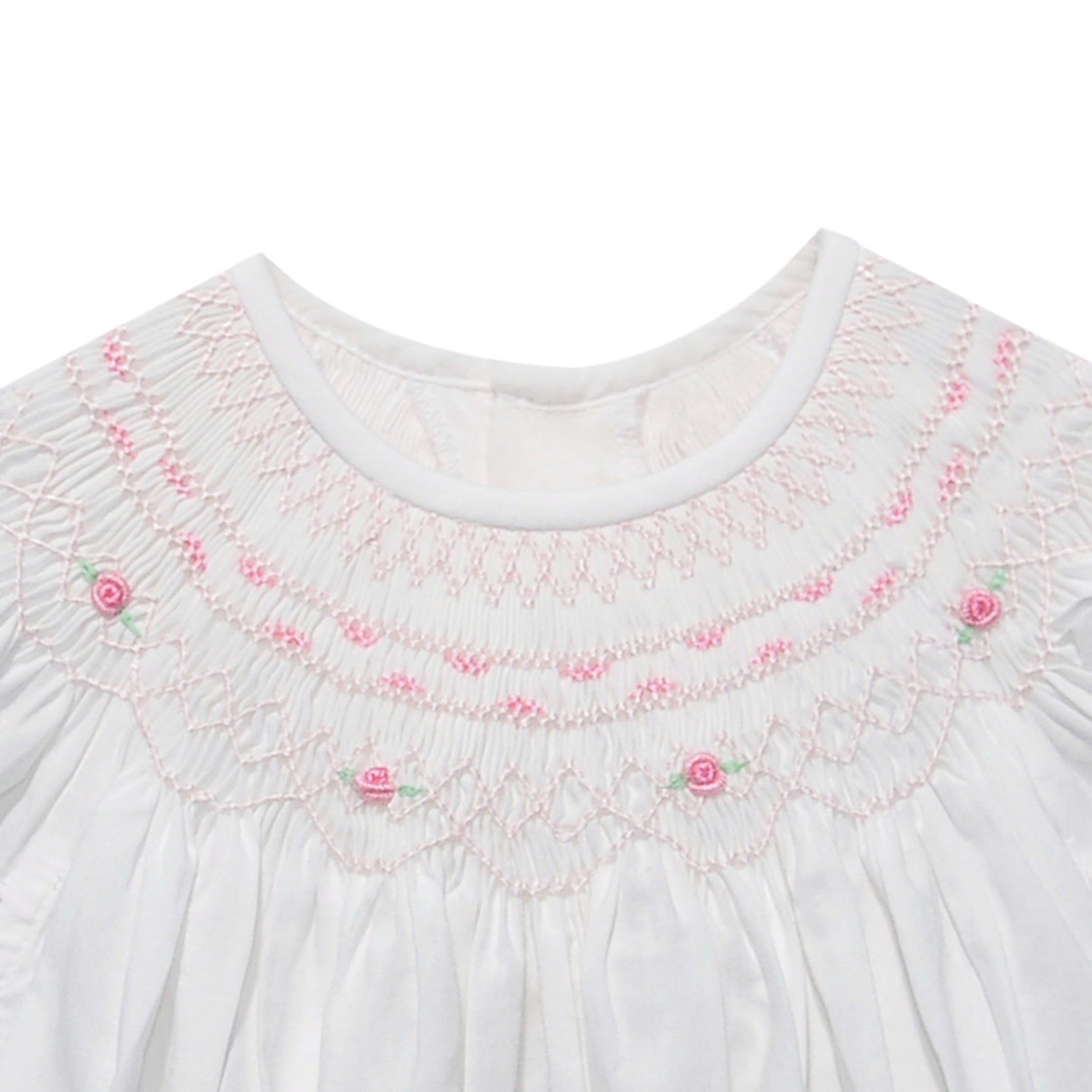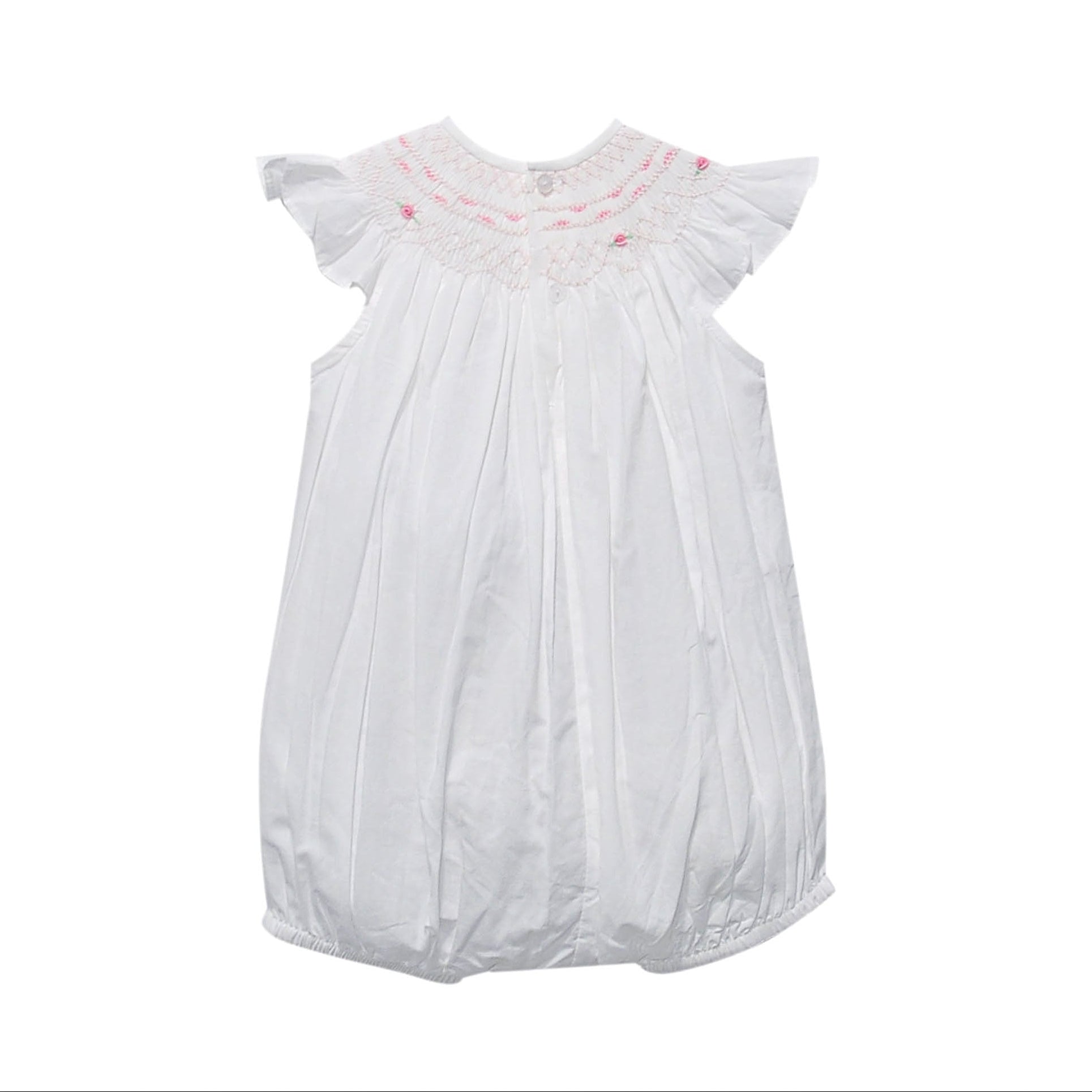 Twirl into spring in this adorable white Georgette bubble from Baby Sen! Featuring delicate roses and charming ruffles, this piece is the perfect companion to any dress in your little one's wardrobe. The soft, breathable fabric keeps her comfortable while the sweet floral details add that extra touch of springtime magic. Pair it with the matching dress for a coordinated look that's sure to turn heads at playdates and family gatherings.