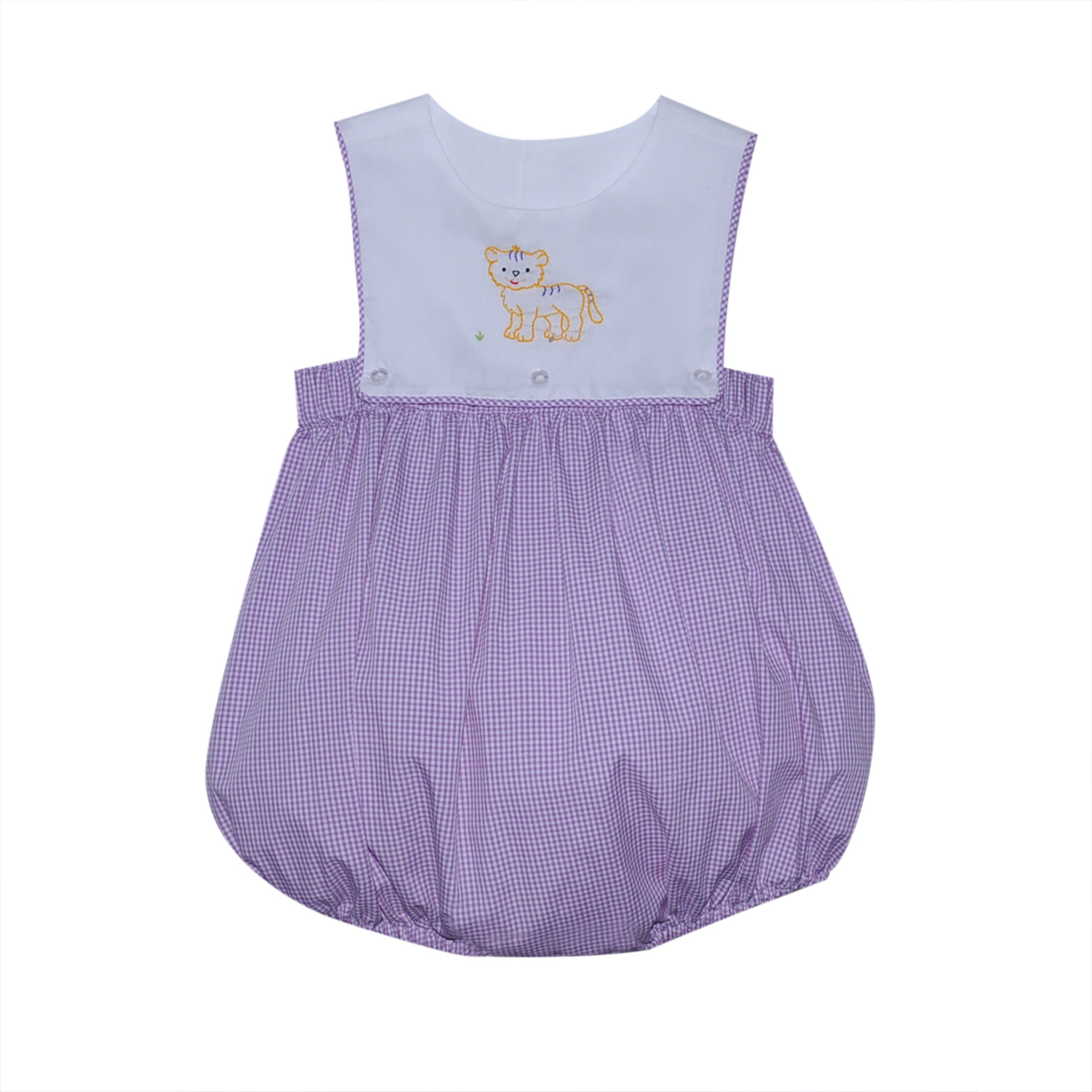 Get ready for Game Day with Southern Saturday's Gingham Boy Bubble featuring a playful tiger embroidery. Perfect for your little one, this baby boy's bubble will have your team roaring with excitement!