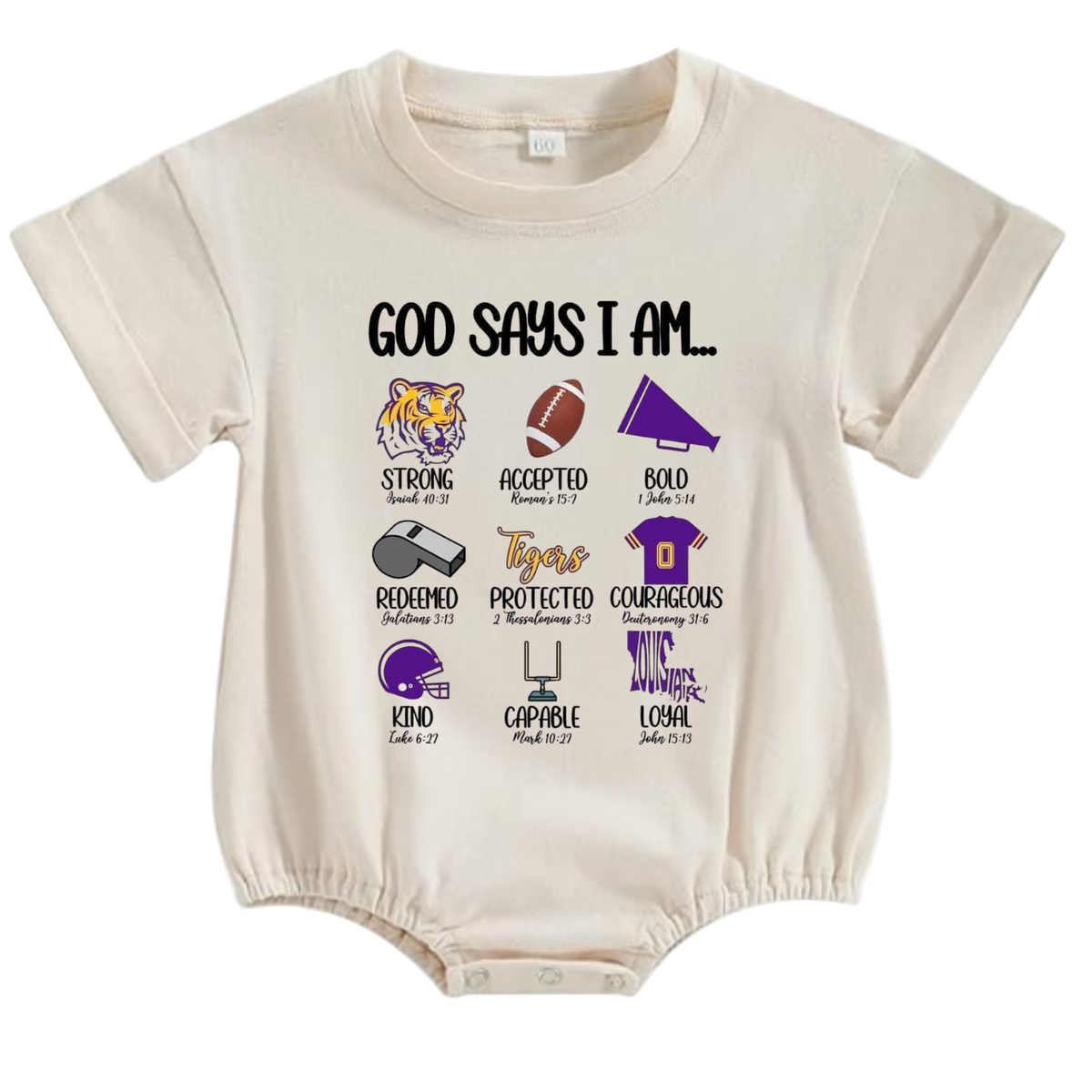 Get ready to show off your little one's love for the LSU Tigers with this adorable Gameday Graphic Bubbles! Perfect for tailgating, this one-piece features a cute graphic and is sure to be the cutest addition to their game day outfit. Geaux Tigers!