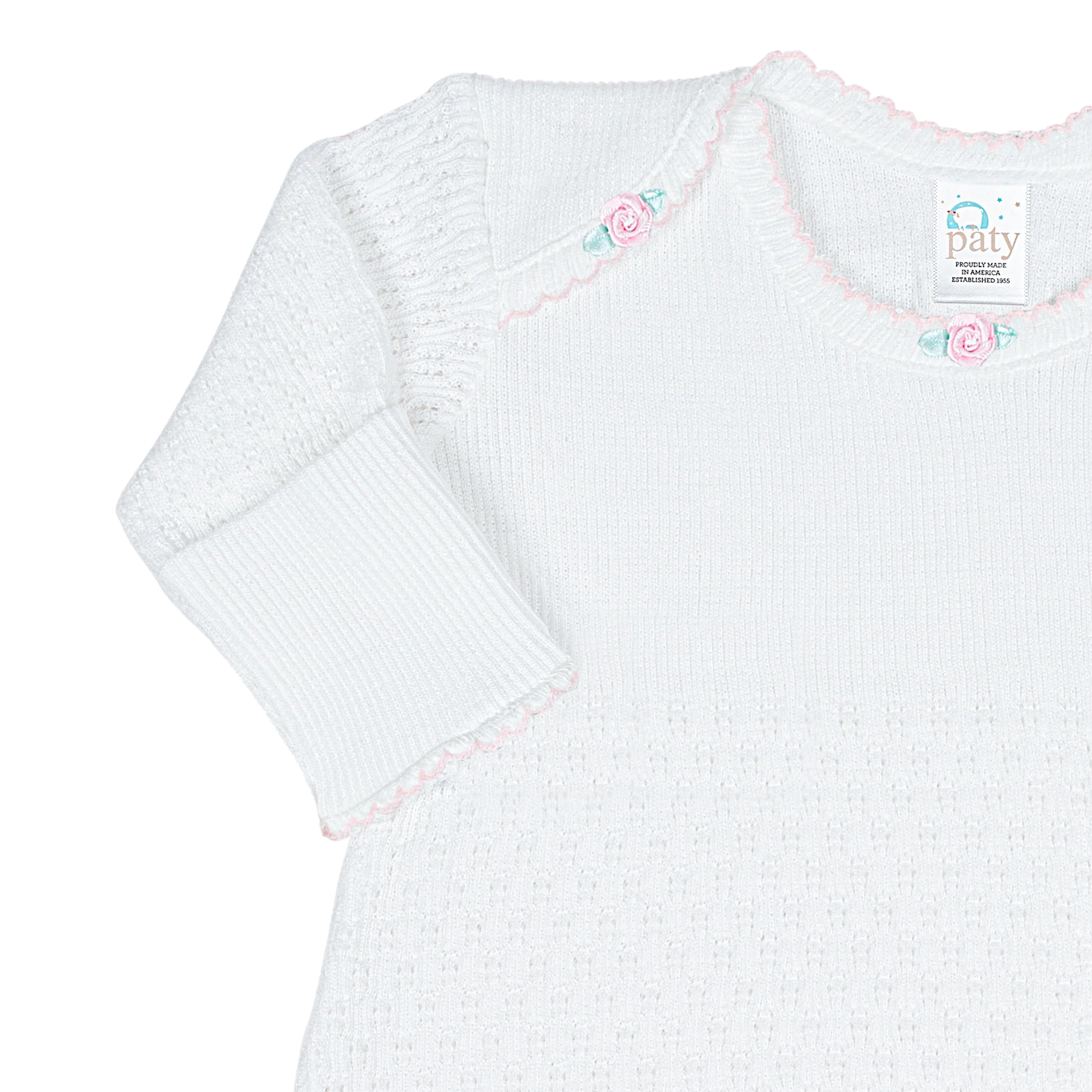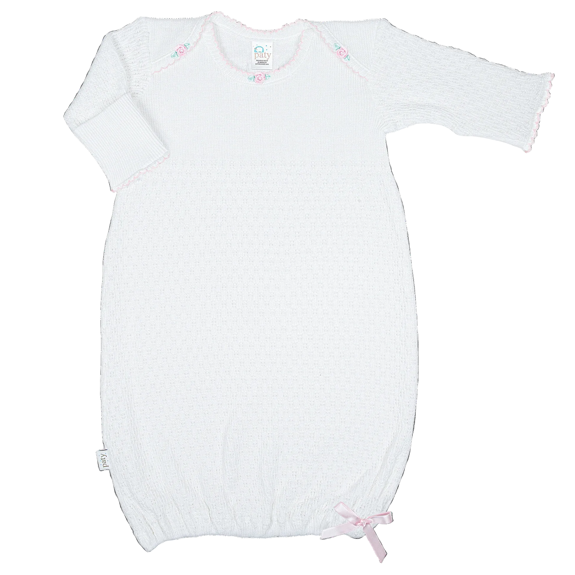 Introduce your little one to luxury with this precious overlap shoulder gown by PATY, adorned with delicate rosettes. Crafted for babies who deserve the finest, this gown features an elegant overlap shoulder design that's both comfortable and utterly charming. The soft rosette embellishments add a touch of romance and sophistication to any special moment—from christenings to milestone celebrations. PATY's signature quality ensures your baby looks absolutely radiant while staying cozy and content.