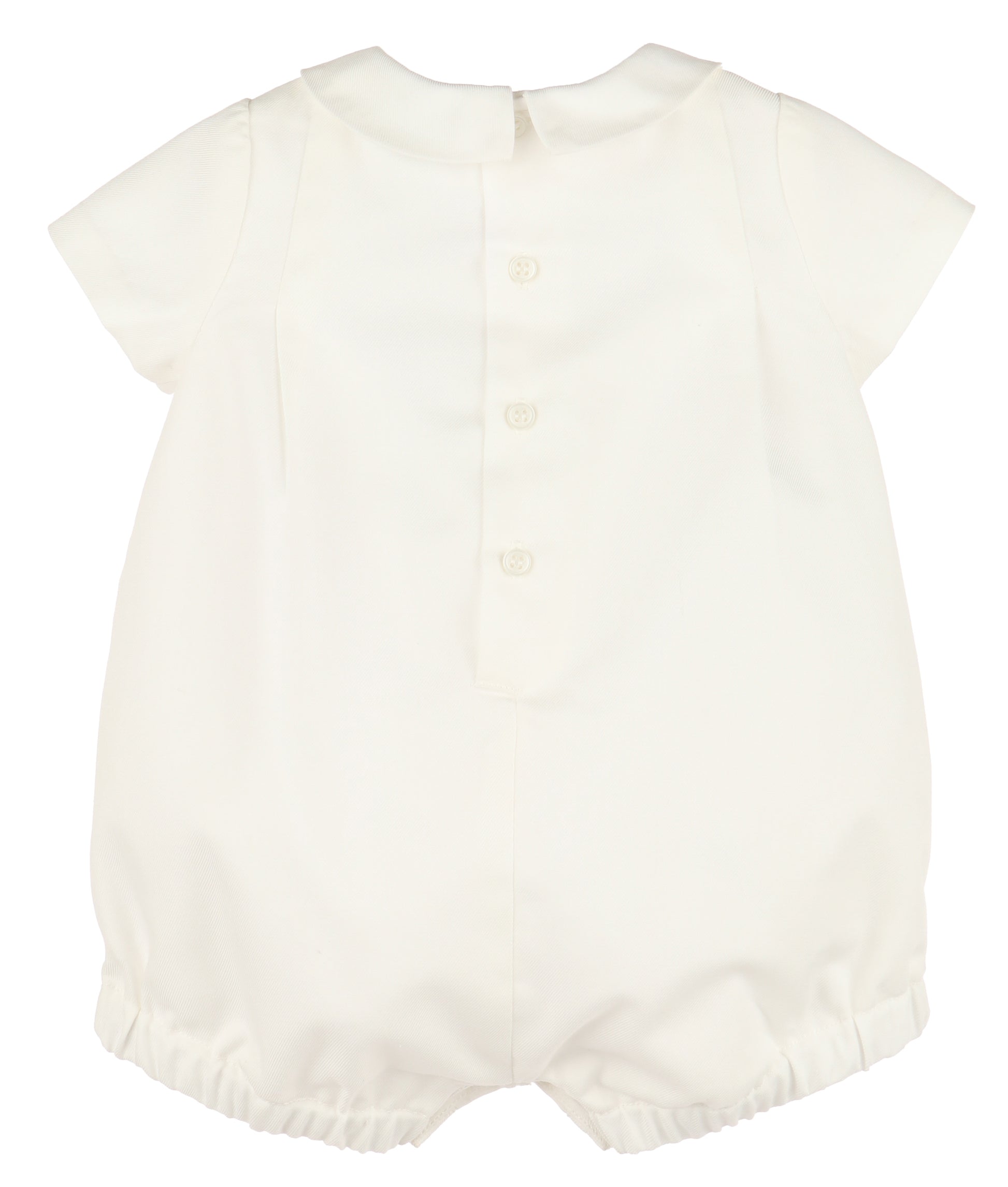 A classic cut for your littlest gentleman! This baby boy’s bubble from Luli & Me is pure heirloom charm with a playful nod to Southern sweetness. Crafted in soft sky blue with crisp white trim and delicate pintuck detailing, it’s finished with hand-embroidered footballs that are just the right dash of dapper. The peter pan collar and button-back closure make for a polished fit, perfect for tiny tailgates, fall family photos, or Sunday snuggles.
