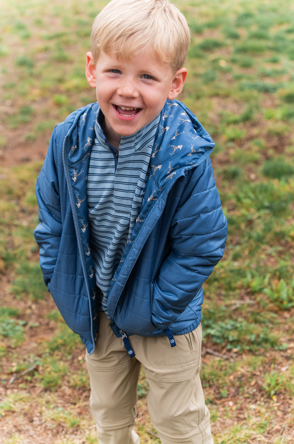 - Insulated for Warmth – Lightweight puffer fill keeps him cozy on cold days without the bulk