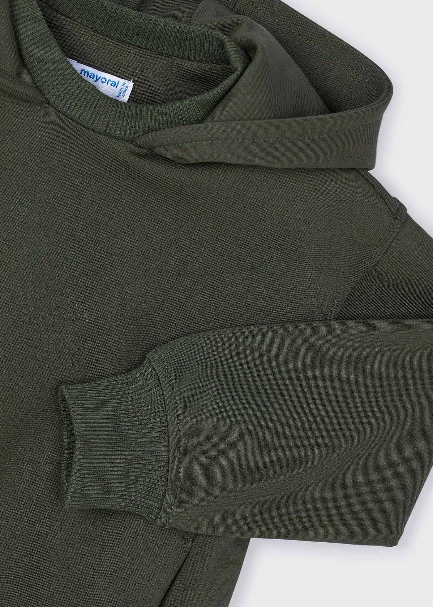 The Hooded Pullover in Olive from Mayoral is a versatile staple designed for comfort and everyday style. Crafted in a rich olive green hue, this long-sleeve sweatshirt features a roomy hood, ribbed cuffs and hem, and a relaxed fit that’s perfect for layering. Whether paired with jeans, joggers, or over a collared shirt, it offers a clean, minimalist look that transitions effortlessly from playtime to outings.