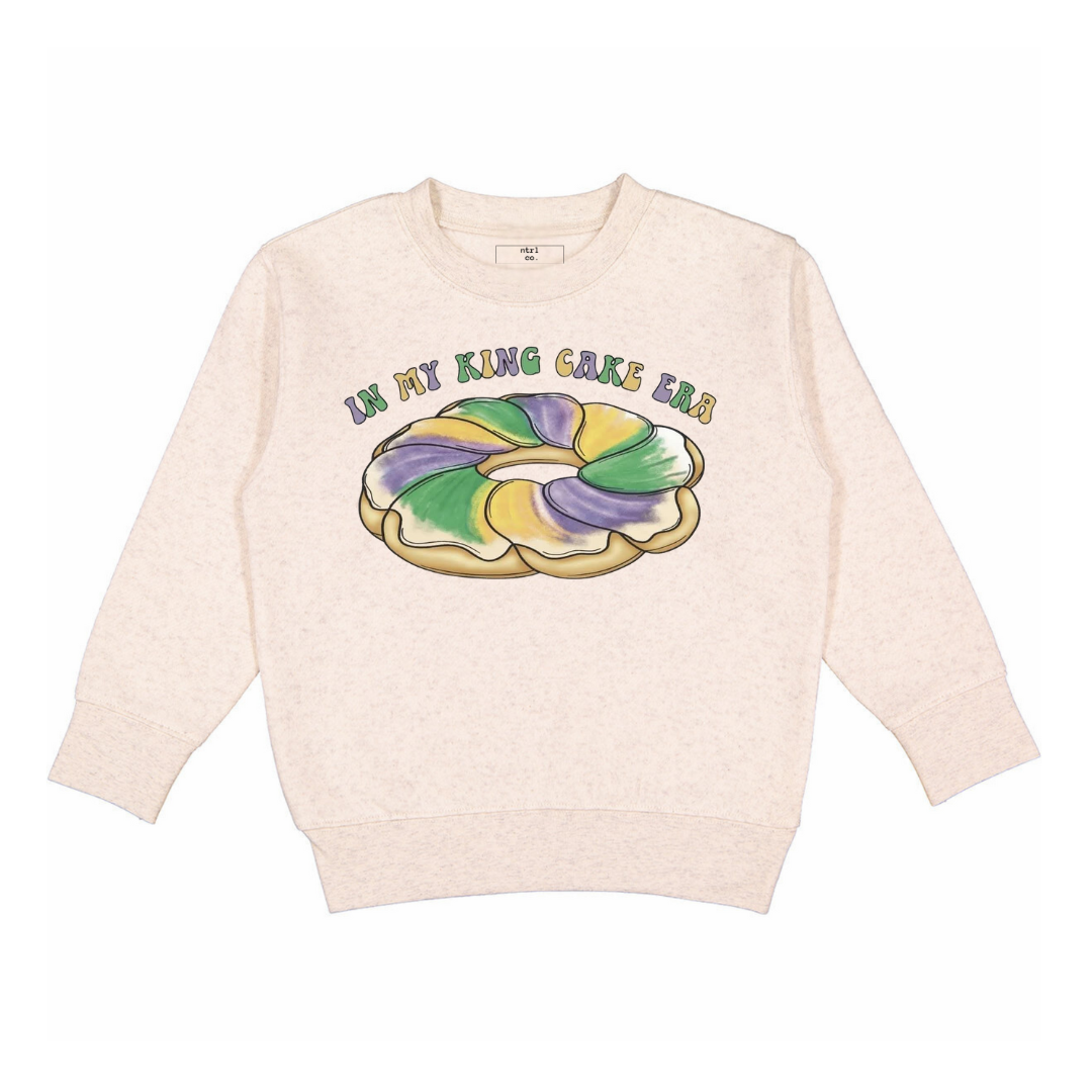 Embrace the spirit of Mardi Gras with this "In My King cake Era" crewneck pullover. Made from soft, high-quality fabric, this cozy sweatshirt features a colorful and lively design, perfect for parading or adding a touch of fun to any day.