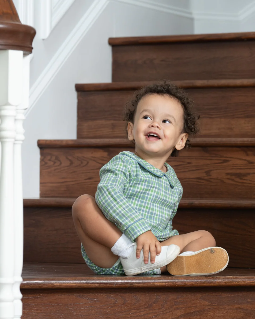 Full of heritage charm and everyday ease, this boys’ bubble from The Oaks is a timeless wardrobe essential for your littlest gentleman. Featuring the signature Bluegrass Plaid in green, blue, and white, it’s finished with a crisp Peter Pan collar trimmed in coordinating green for a thoughtful, tailored look. The long sleeves and elasticized leg openings provide comfort and coverage, while the hidden snaps offer practicality for quick changes on the go.