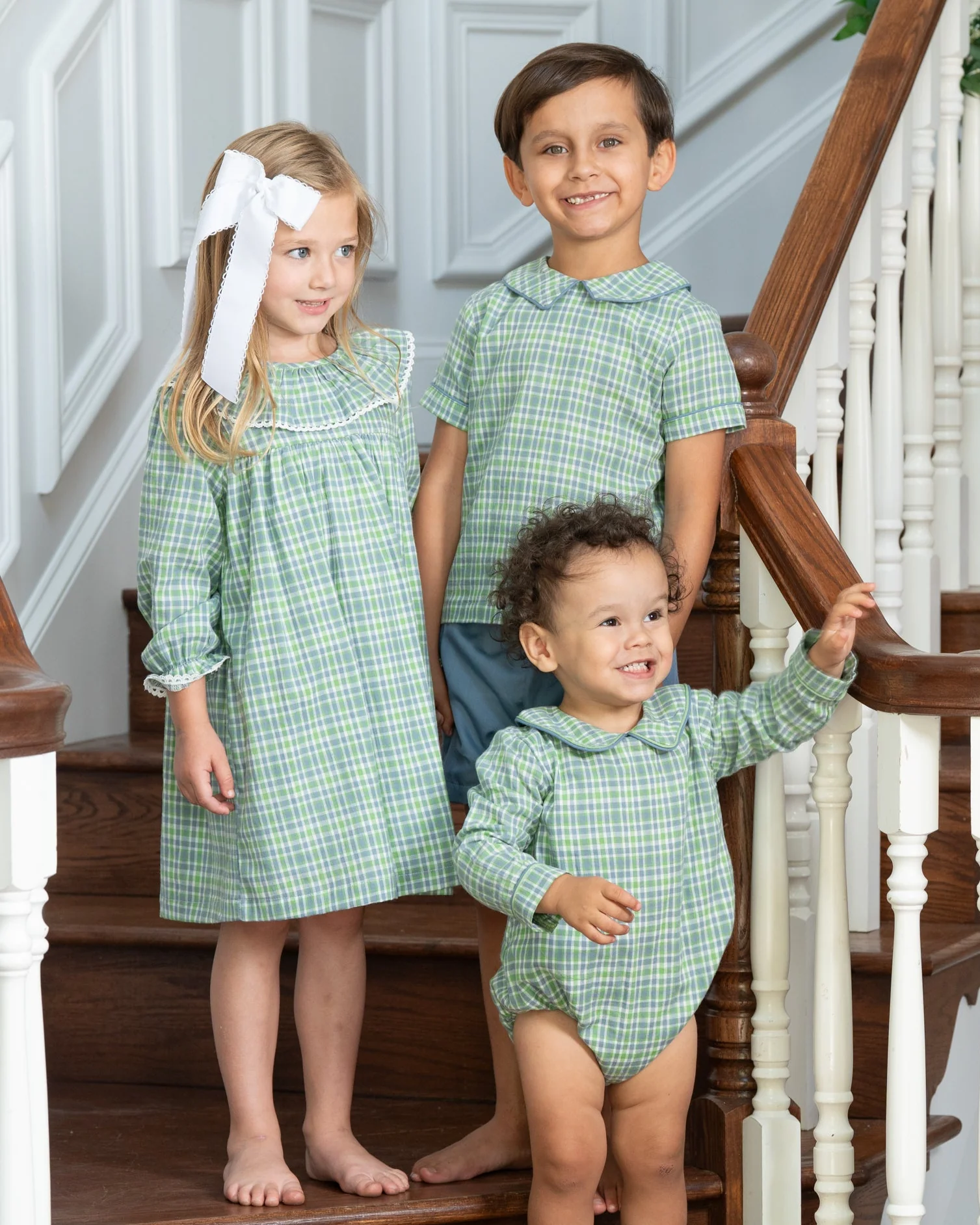 - Coordinates with matching sibling sets for a pulled-together family look