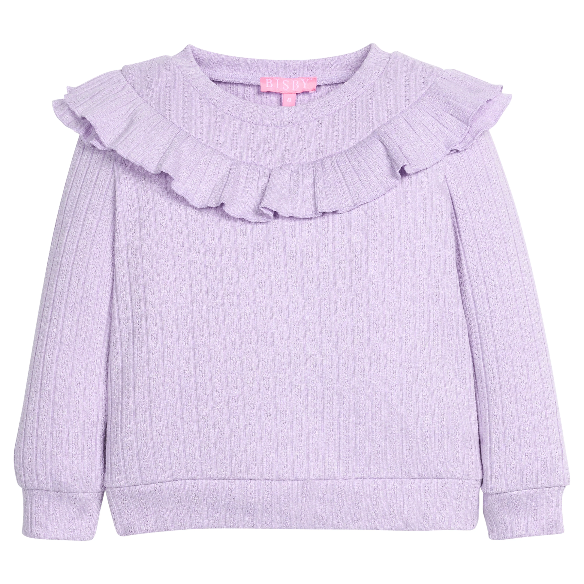 Bisby's Jody Top is the perfect cozy, cute style your #bisbygirl won't be able to get enough of. We love the ruffle around the shoulders and sweatshirt-inspired fit!