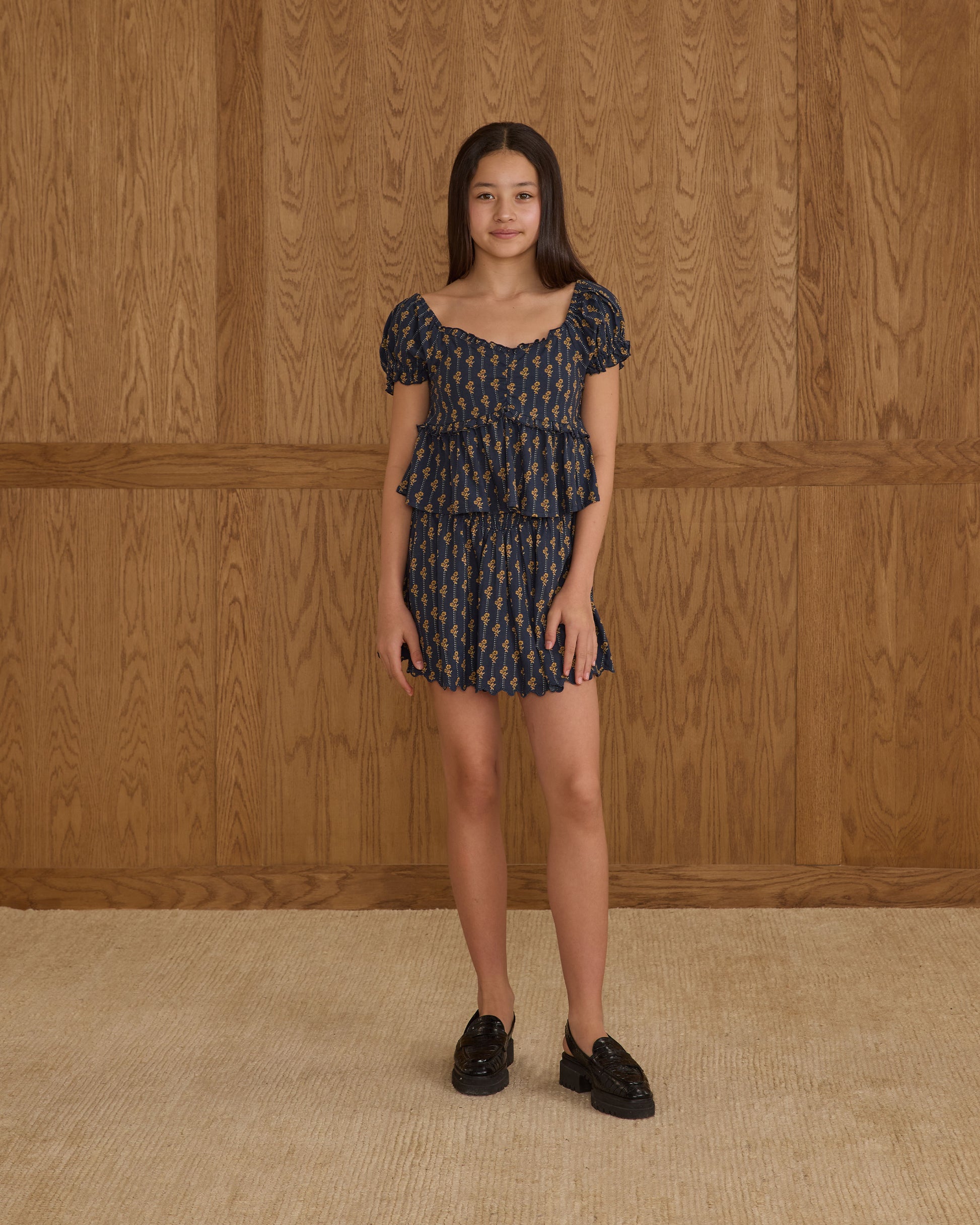 Rylee + Cru's Jubilee Top features a sweetheart neckline, smocked back, ruched center seam, and delicate ruffle details—bringing a touch of elegance to every look.