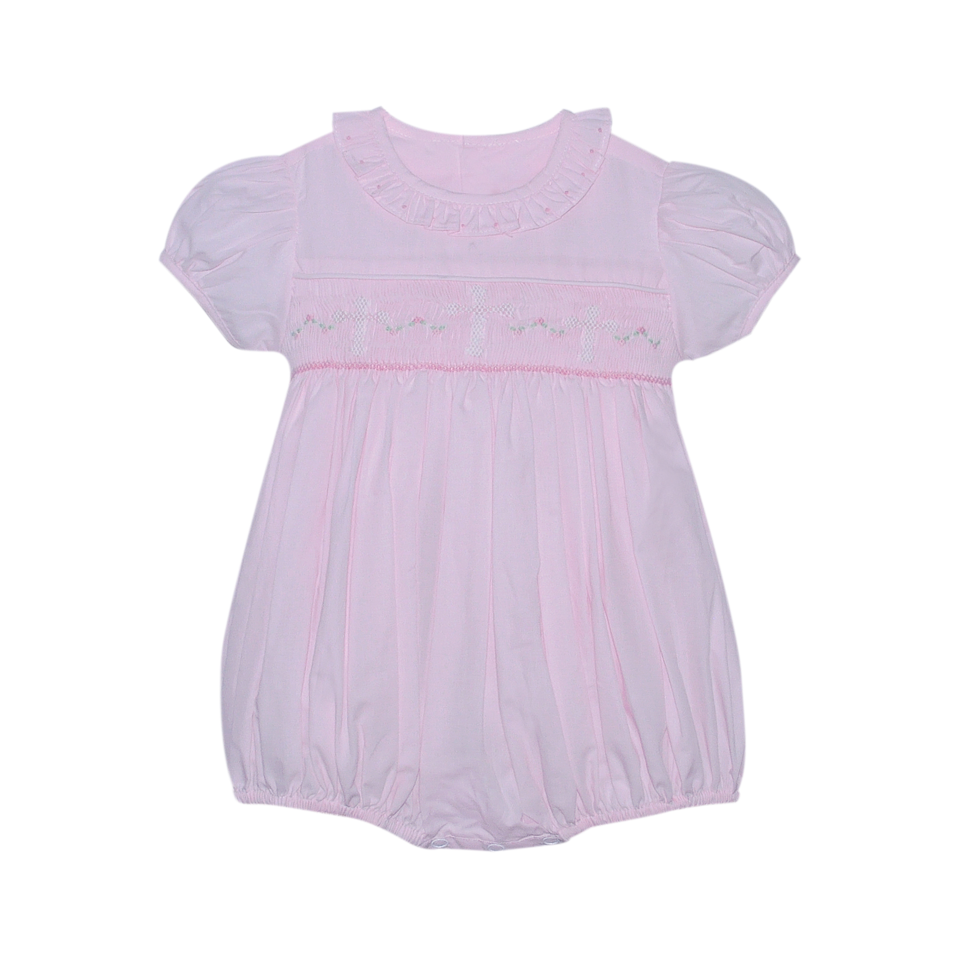 Meet the Juliette Bubble in soft pink—a charming piece from Remember Nguyen featuring three delicate smocked crosses down the front. Perfect for little ones who love texture and detail, this bubble combines comfort with whimsical style. The smocked design adds a handcrafted touch that makes getting dressed feel extra special. A sweet staple for any child's wardrobe.