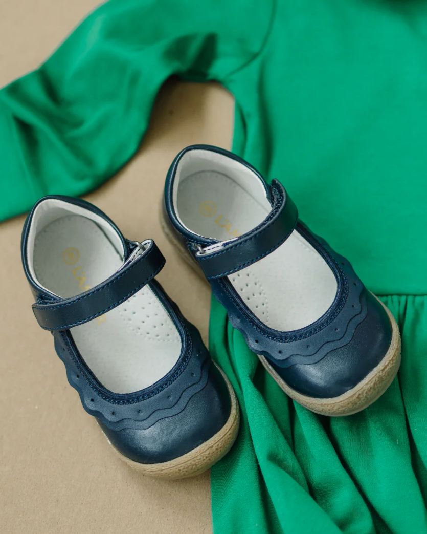 Ruffles sweeten this go to sporty mary jane, fully equipped to keep feet in comfort all day long.