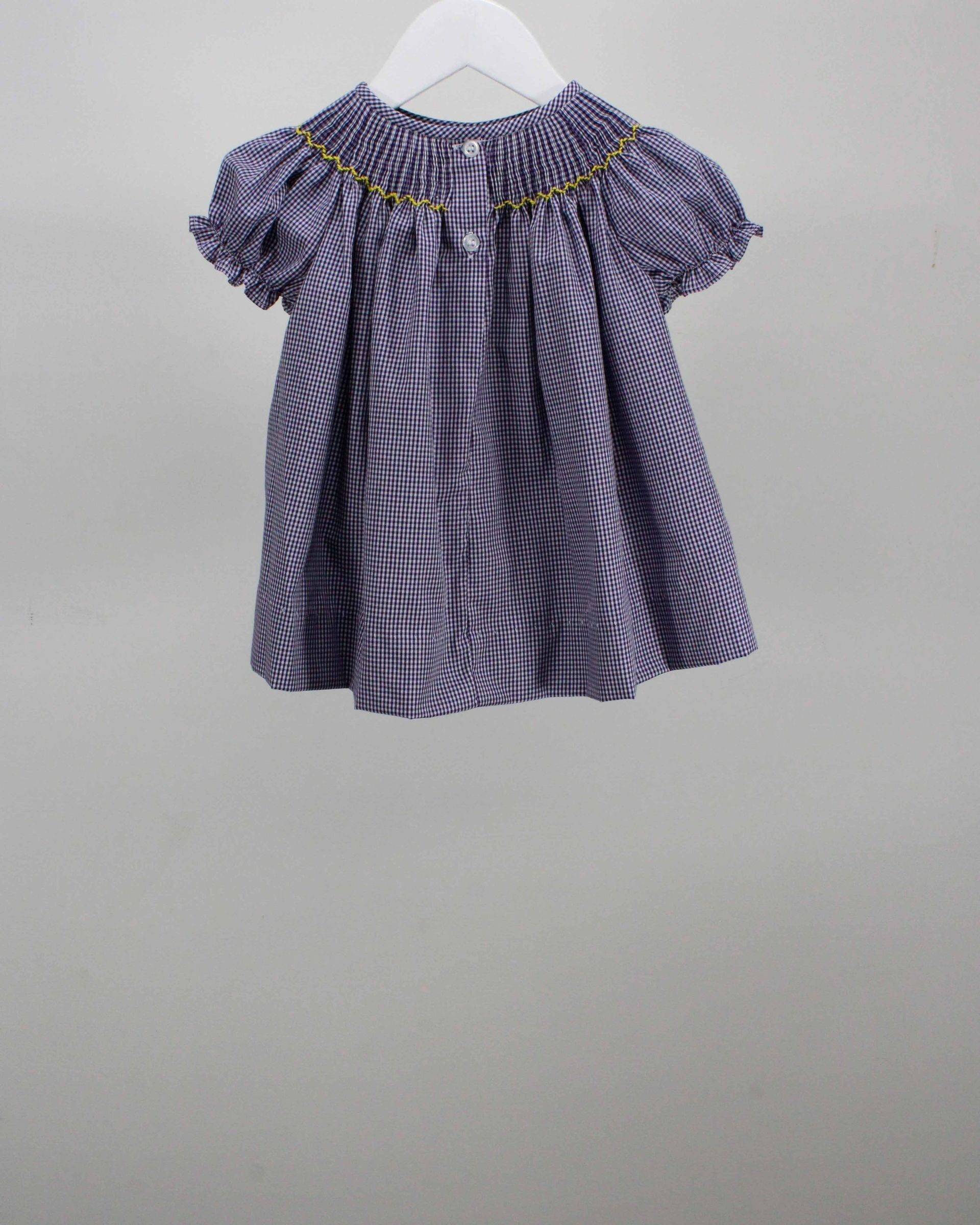 Complete the perfect sibling set with the LA Purple & Gold Zoey Football Dress! 💜💛 Made from soft purple gingham, this classic smocked dress features hand-stitched football helmets and a playful tiger mascot across the chest. Ruffled puff sleeves and a full, flowing skirt add extra sweetness—ideal for game days, family photos, or any Tiger fan celebration!