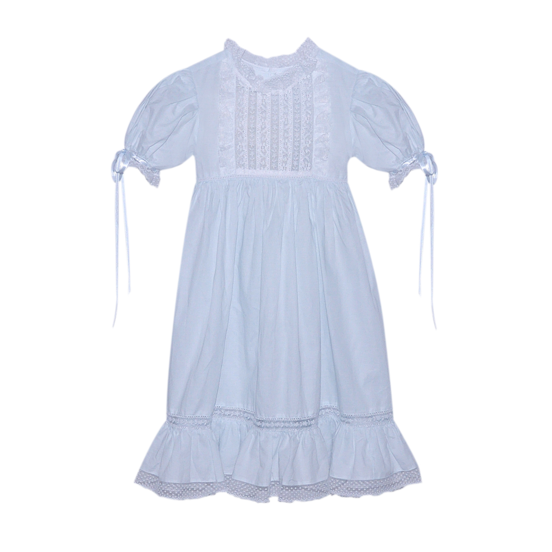 Dress your little one in this stunning Lacey Dress in Blue. Perfect for her First Communion, this heirloom quality dress is crafted with intricate lace details and a beautiful blue hue. Give your child a special and memorable experience with this elegant and timeless dress.
