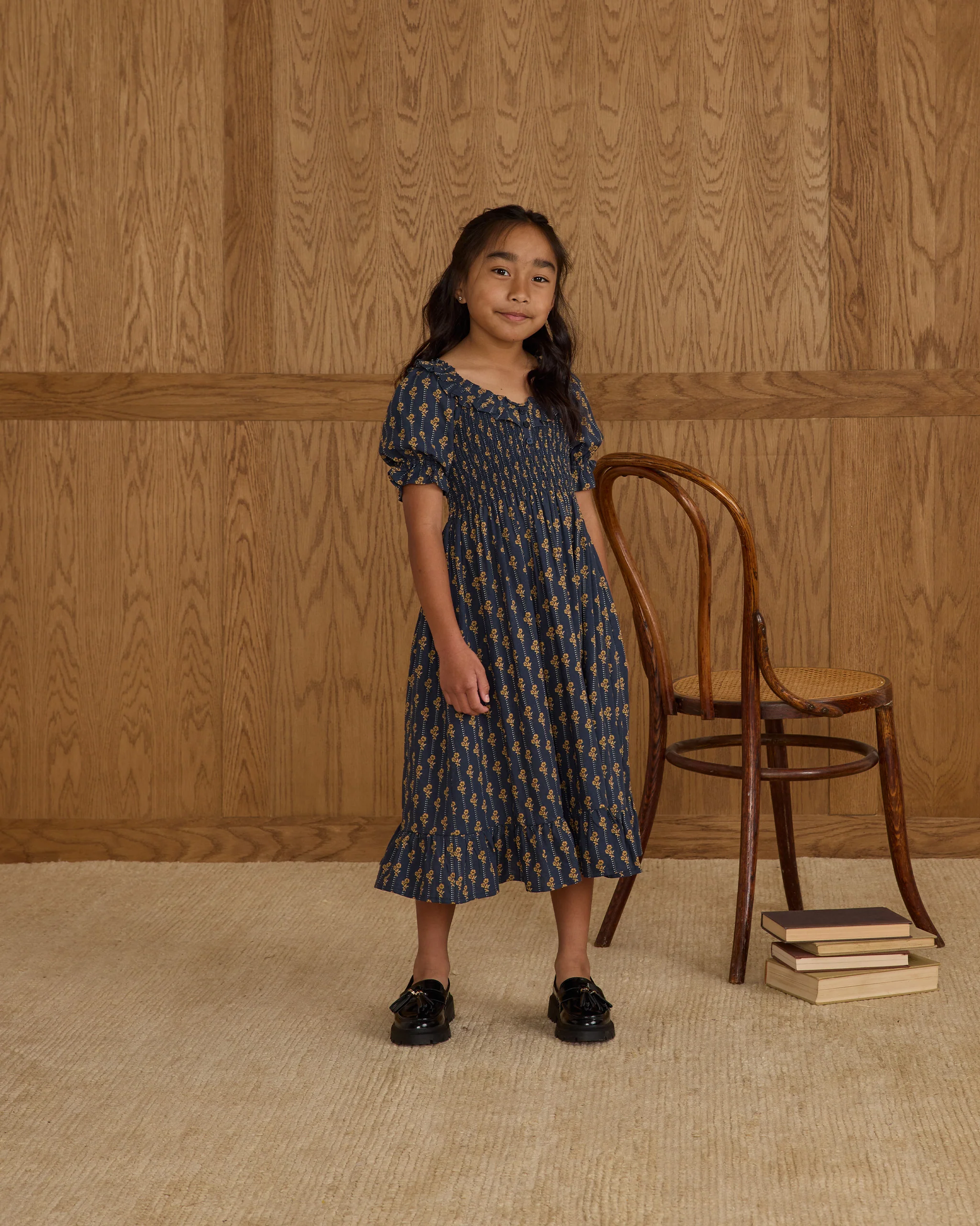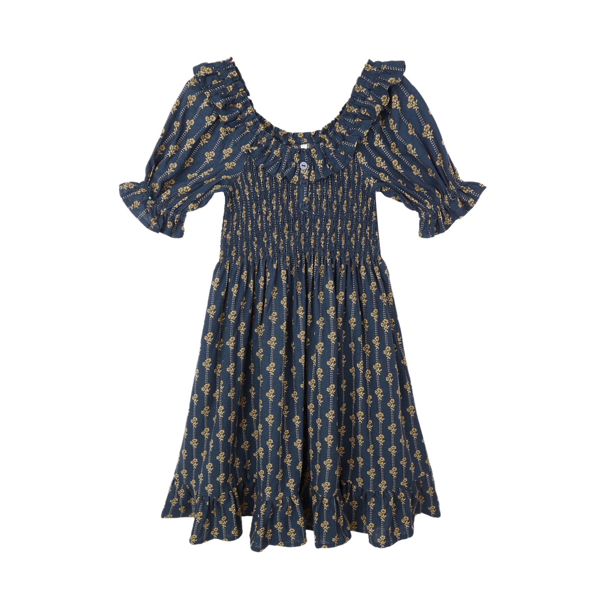 Rylee + Cru's Lexi Dress features a smocked bodice, a charming collar, and delicate ruffle details for a sweet look.