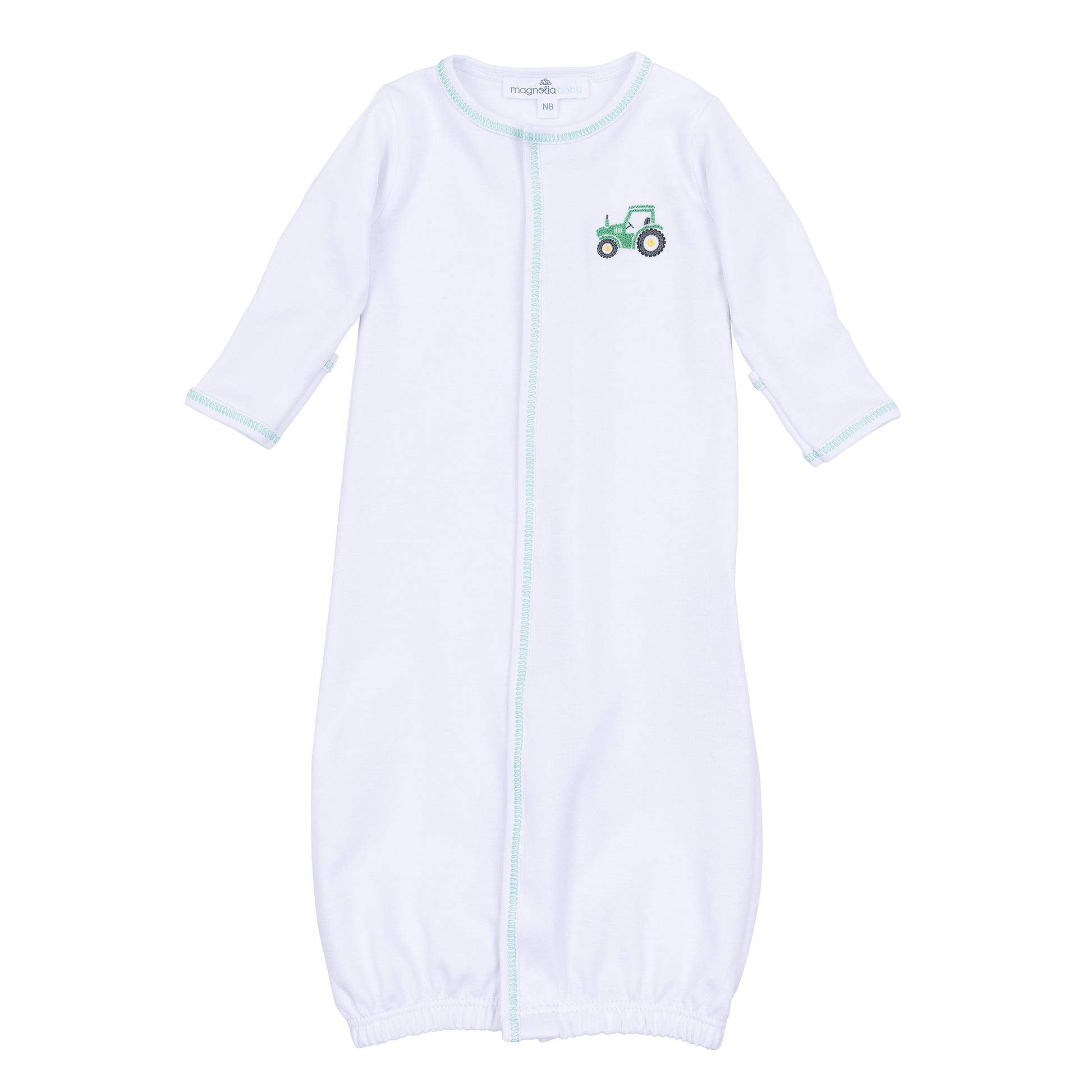 Discover versatile charm with Magnolia Baby's Lil' Green Tractor Embroidered Converter! Made from luxurious Pima Cotton, this adaptable piece features a sweet industrial embroidery of a cute green tractor, effortlessly converting for all-day comfort and peaceful sleep for your little one.