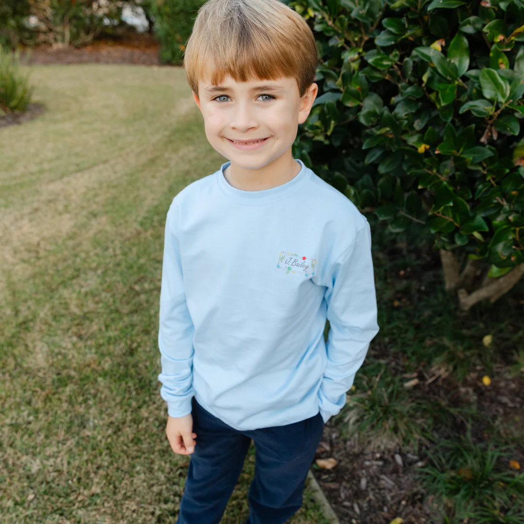 Everyday clothing will seem more festive with this Light Blue Long-sleeved tee with Christmas Labs. It is made from soft cotton which makes it perfect for staying warm and cozy during the holidays. The charming print adds personality and fun that makes it ideal for casual get-togethers and holiday playdates or just lounging in style.