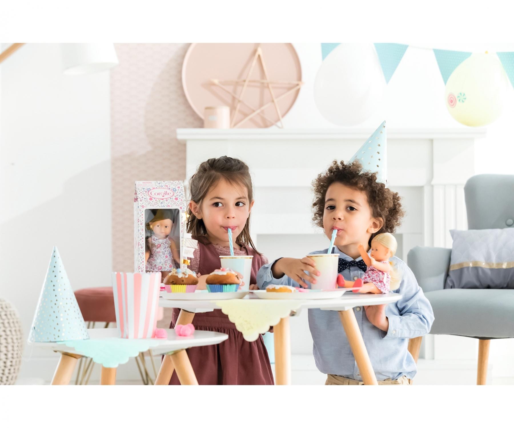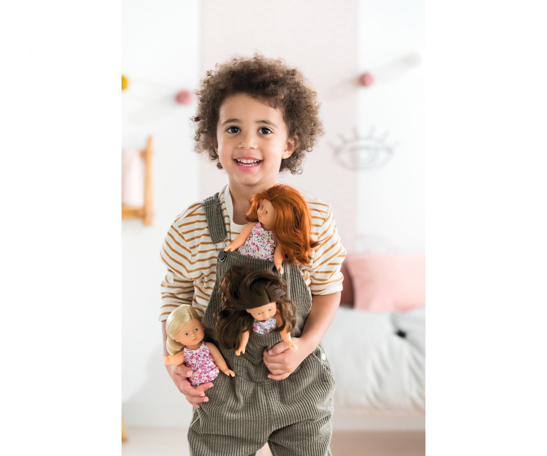 Mini Corolline Rosy Ballerina Set is the perfect gift for budding ballerinas ages 3 and up. The set includes Rosy, a petite 8-inch doll dressed for dance class in a sleeveless white leotard with a tulle overskirt and matching molded shoes (not removable), and three accessories: a pink ballet sweater, pink legwarmers and a tiara. Mini Corolline Rosy has blue painted eyes, long blond hair and an all-vinyl body that is delicately scented with vanilla — a Corolle signature. Rosy, Romy, Rosaly or Ruby — every child can choose their favorite Mini Corolline or collect them all! Ages 3 and up.