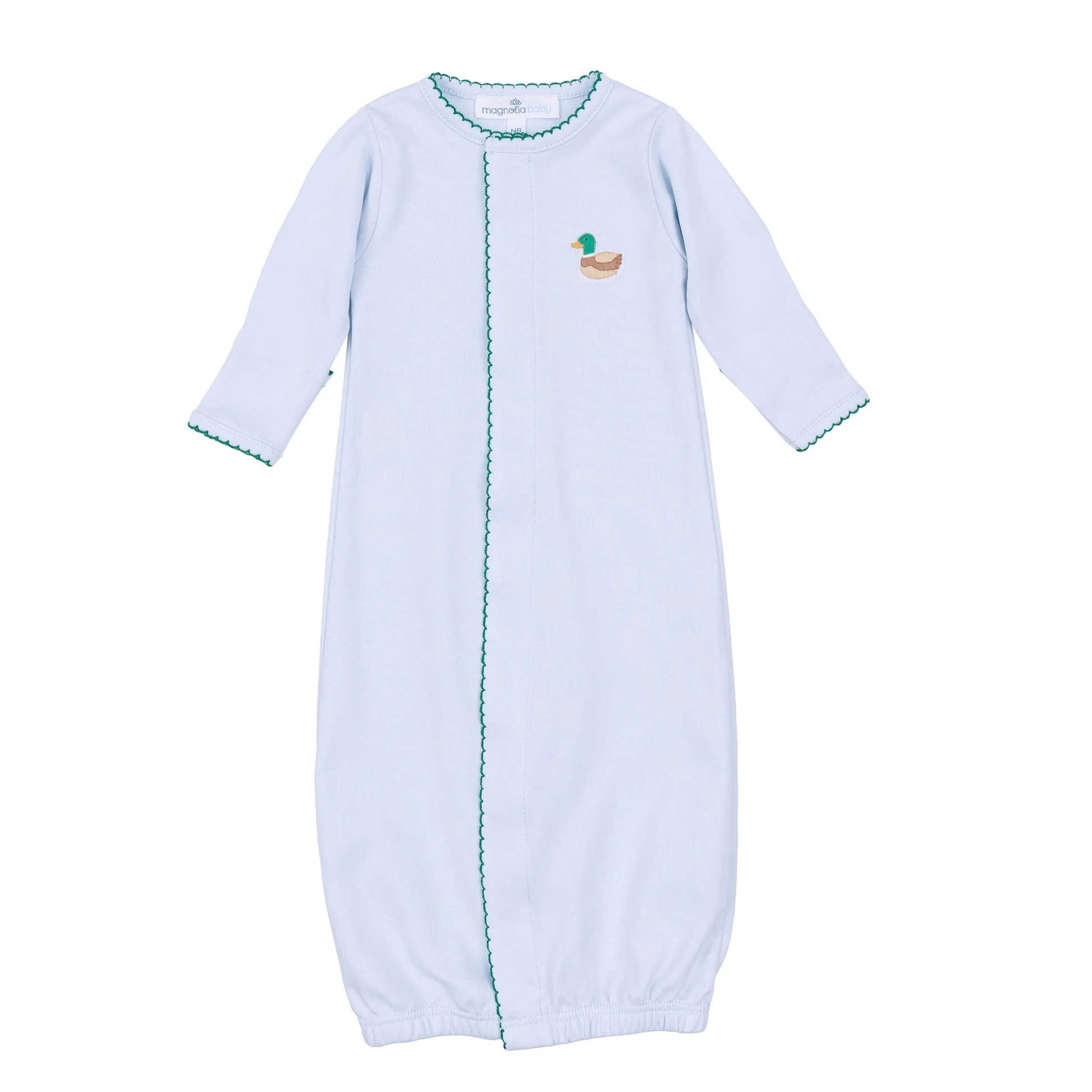 A versatile and sweet converter in light blue luxurious Pima Cotton, capturing the essence of the outdoors with its handmade duck embroidery. This piece offers both style and practicality.