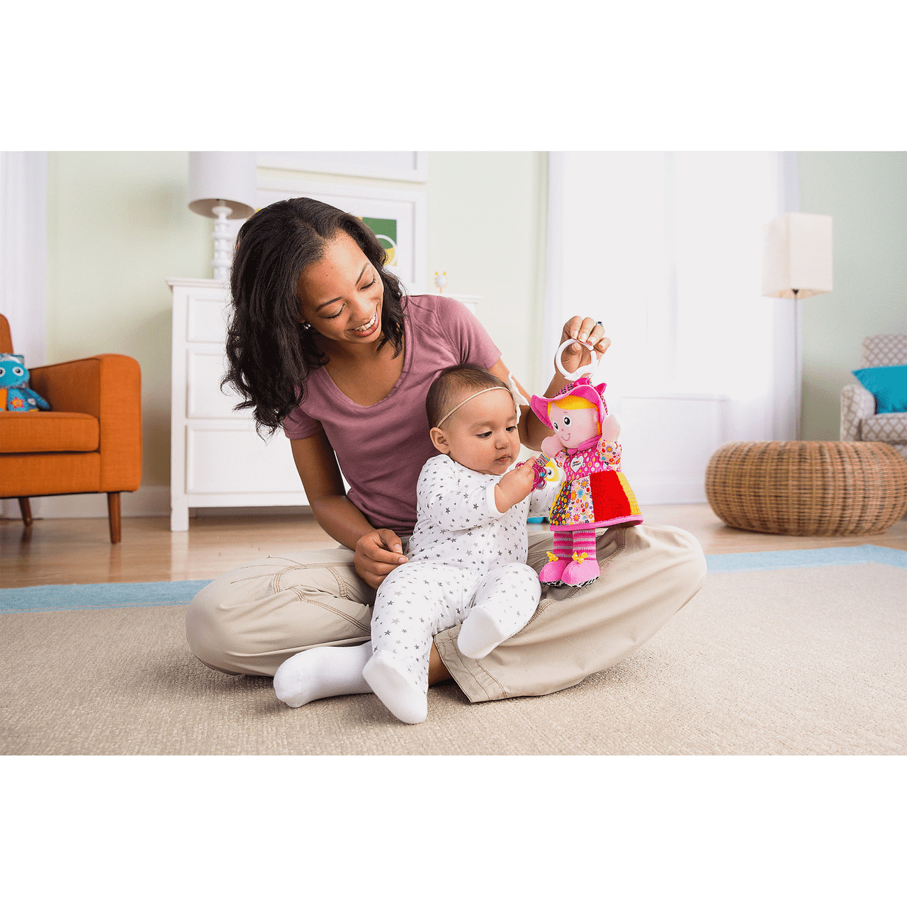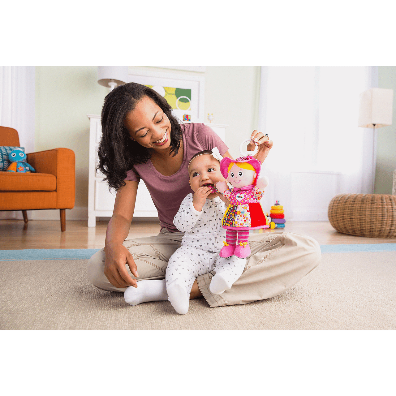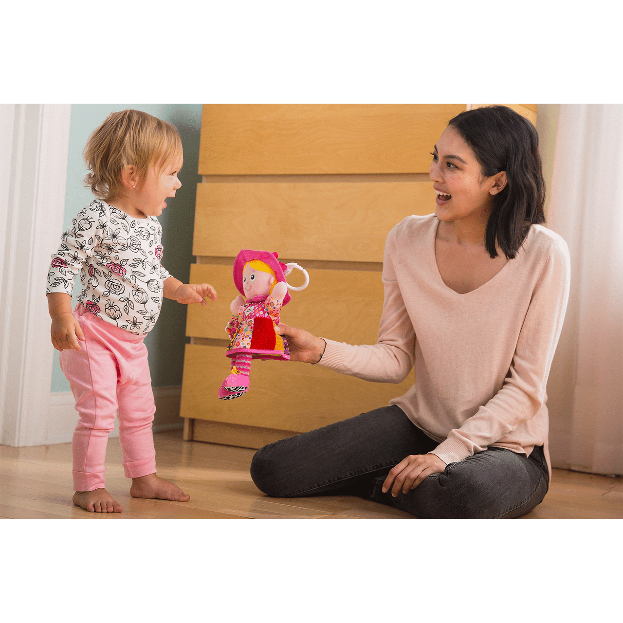Emily is also a wonderful toy for bonding time with baby where you can begin early role play and social skill development as your baby grows. Emily loves to travel too! She includes a large clip that makes her easy to attach to a stroller, car seat, diaper bag, and more. Sensory learning is sure to bloom into a lovely new friendship with Lamaze’s My Friend Emily.