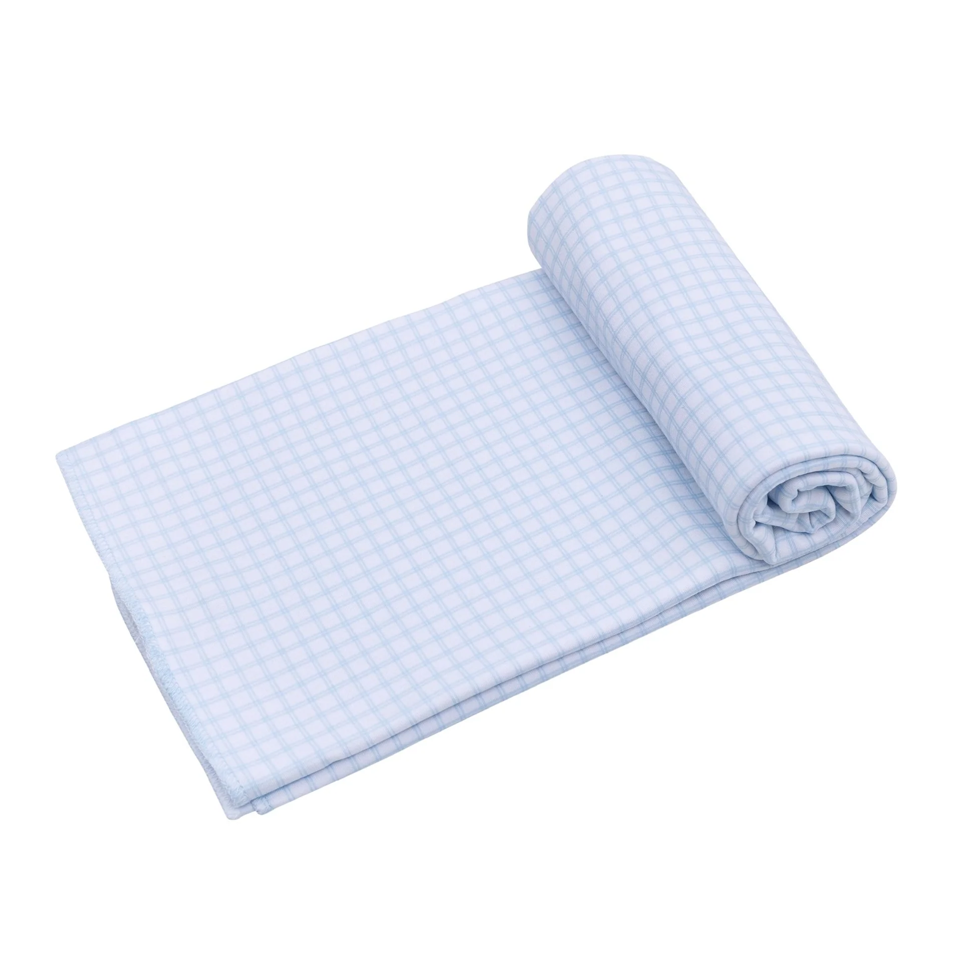 Introducing sweet dream wrapping with our Peek-A-Boo Wishes Swaddle Blanket in light blue, crafted from the most luxurious Pima cotton. This adorable blanket features a charming check pattern, perfect for spending quality time with family, visiting loved ones, a delightful first adventure at the park, offering a charming and soft way to swaddle your baby for sleep, providing a secure and cozy environment for peaceful rest, a delightful piece for baby's bedtime routine.