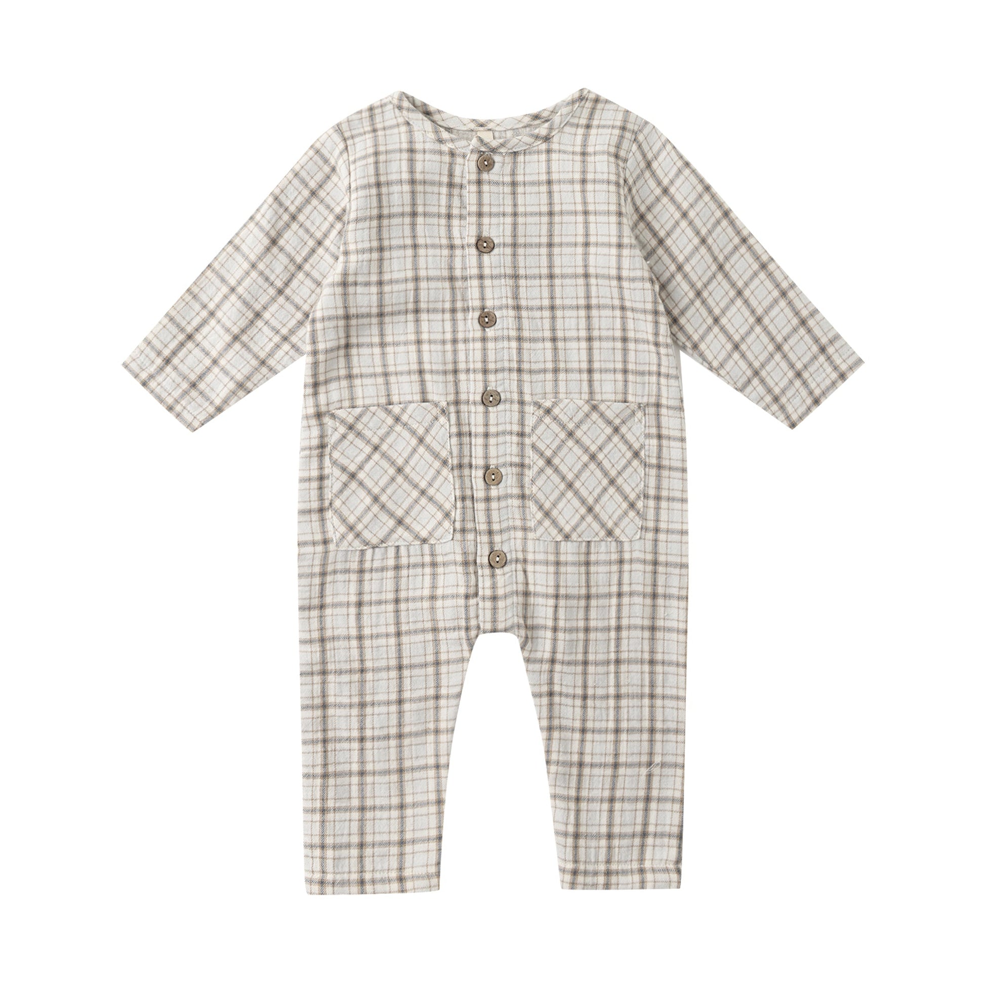 Made from soft organic cotton gauze, this darling jumpsuit features square patch pockets on the front and buttons down the center for easy changing - an everyday staple with timeless charm.