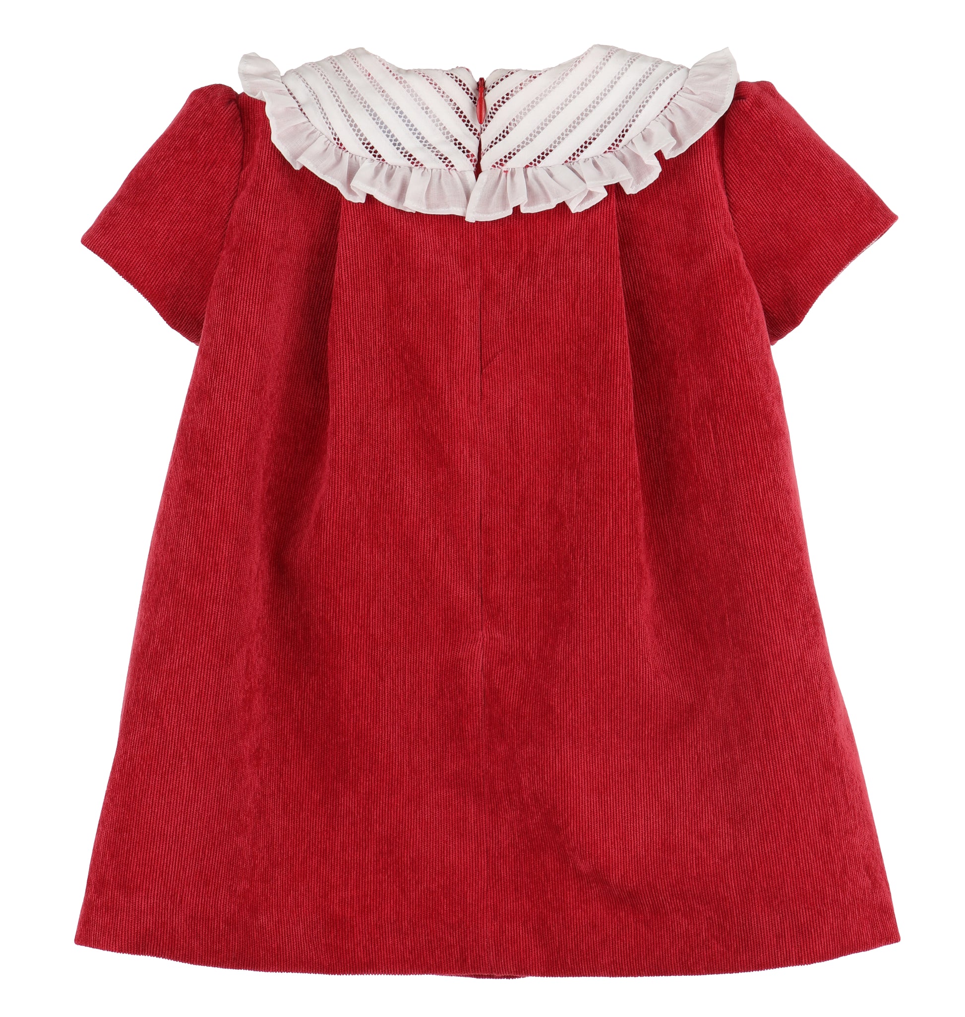 Sweetly detailed and rich in seasonal color, the Randalls Bib Dress in Red from Luli & Me is a refined nod to classic holiday charm. The standout feature—a crisp white bib collar trimmed in ruffles and adorned with red and white embroidery—lends heirloom elegance to its timeless silhouette. Crafted in soft, textured fabric with tailored pleats, it's designed for festive gatherings, cherished photos, and cozy celebrations.
