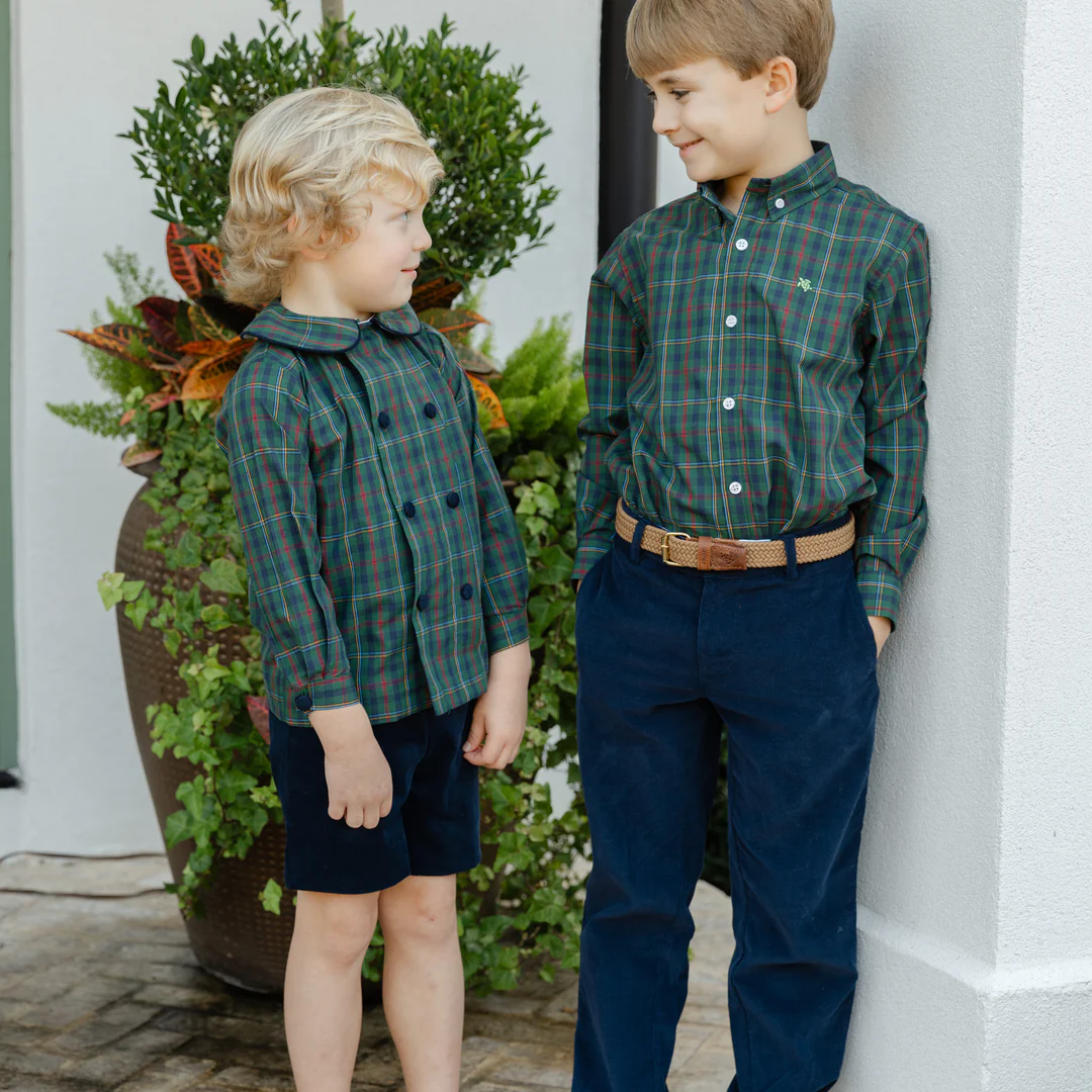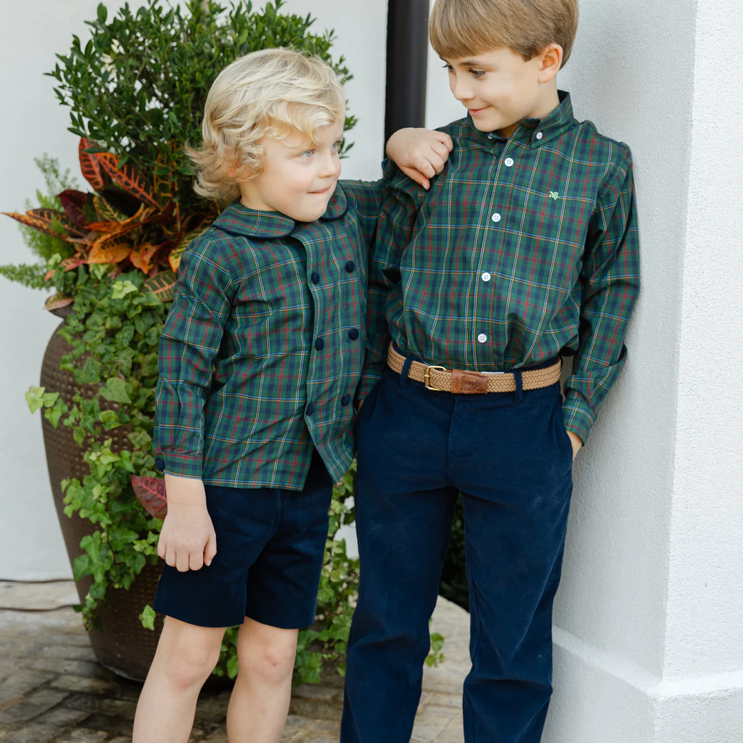 The Watson Button-Down is a wardrobe classic with rich plaid tones and soft cotton comfort. A favorite for both school and special family events.