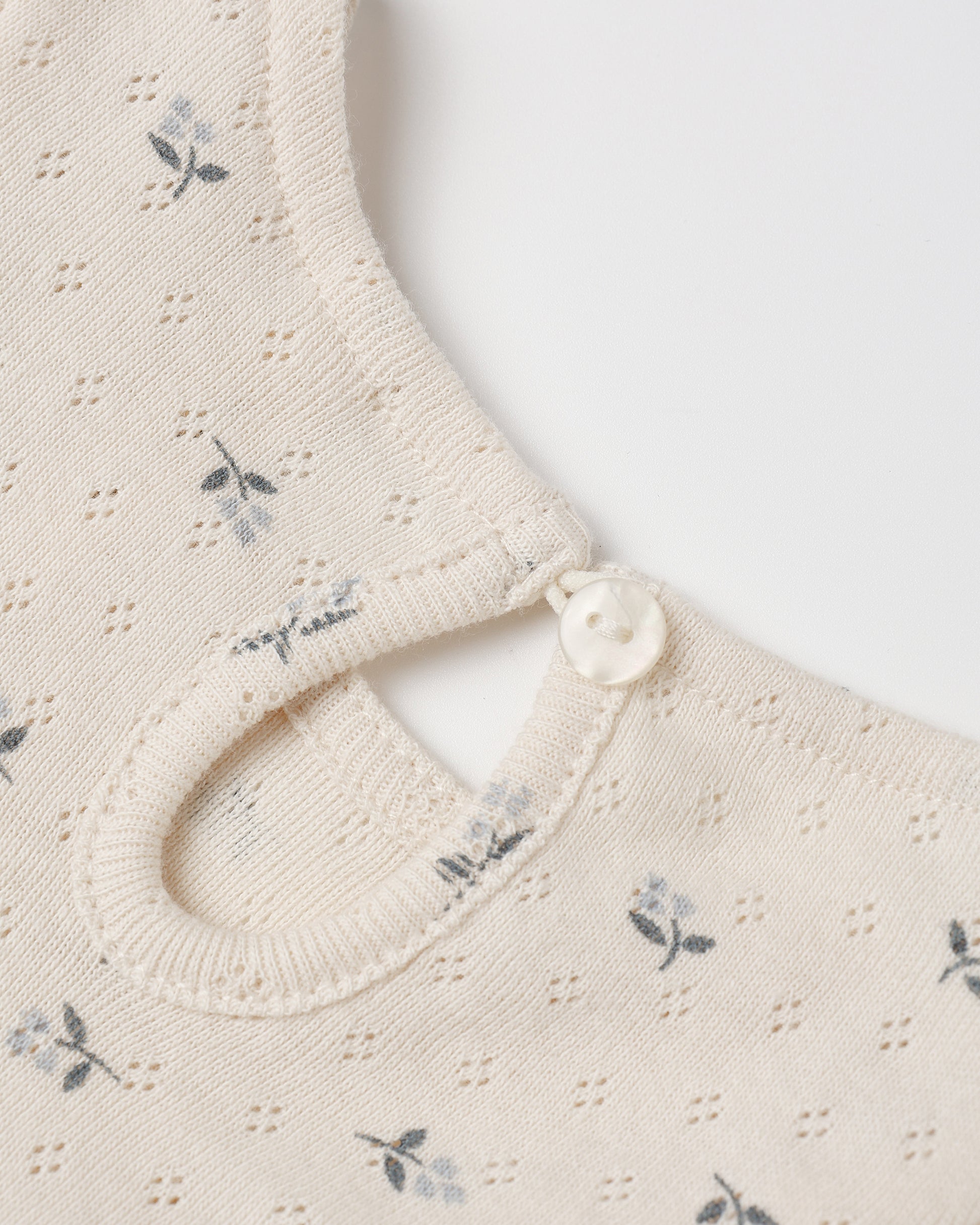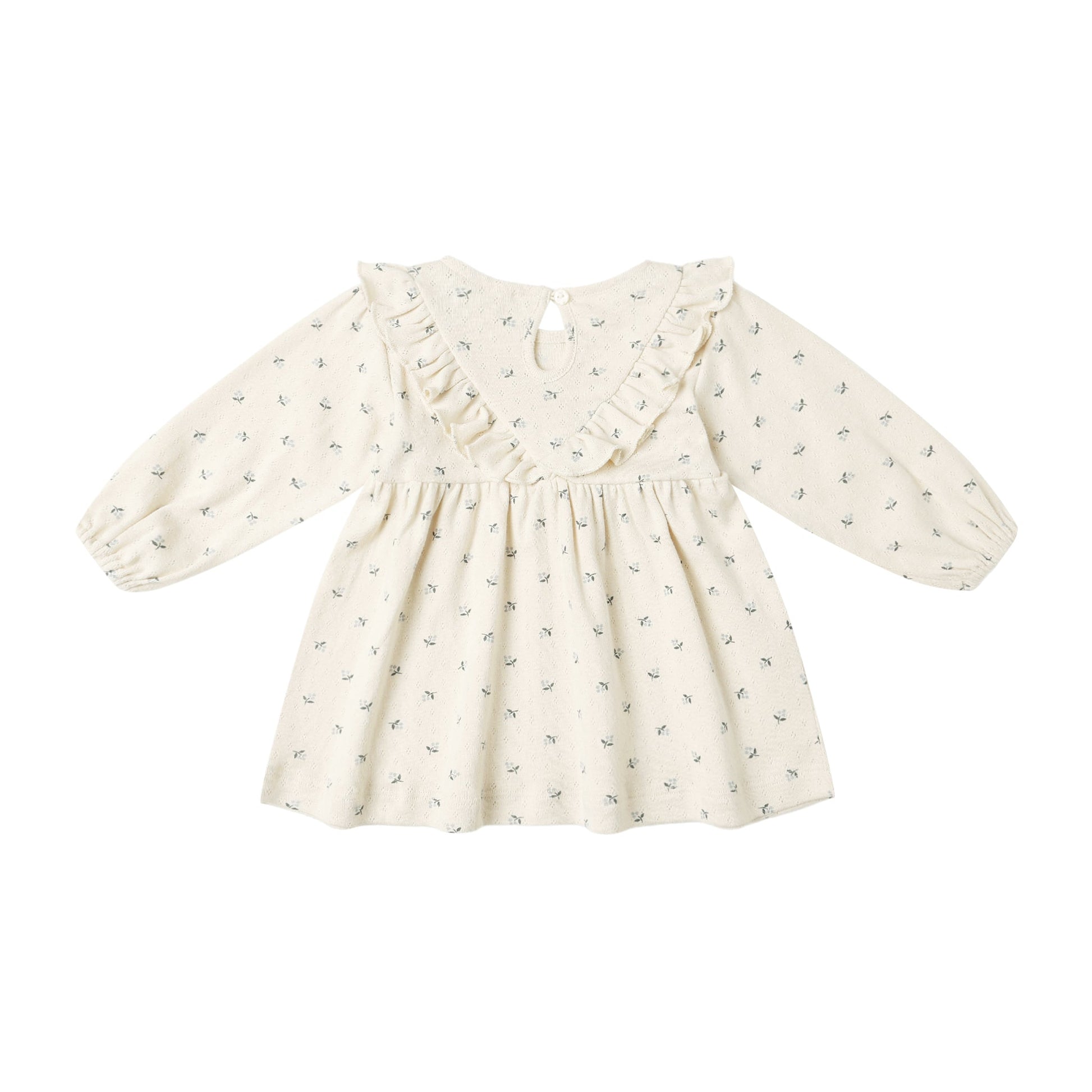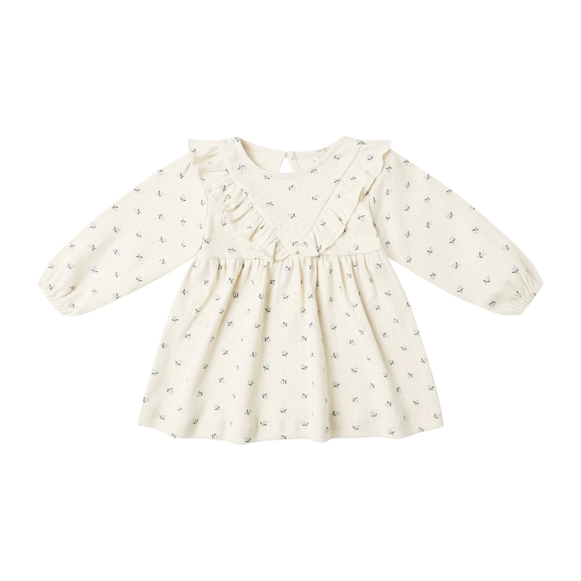 This long sleeve dress in their classic pointelle fabric features delicate V-ruffle detail, a button-back closure for easy changing, and matching bloomers for a sweet finishing touch.