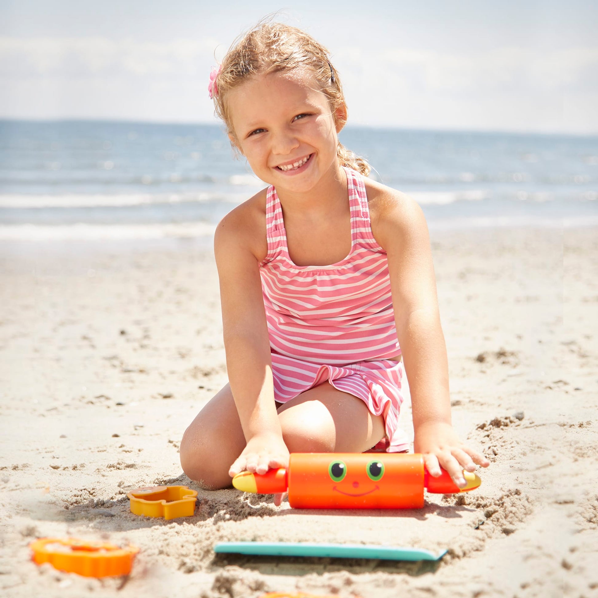 Take the fun of the beach or sandbox, add cookie cutters, a rolling pin, a crab-topped "sprinkle" shaker, a cookie sheet, a spatula and shell-shaped dishes . . . it's a recipe for delight! Kids will love to serve up custom sand "cookies" for a picnic at the beach or in the sandbox.