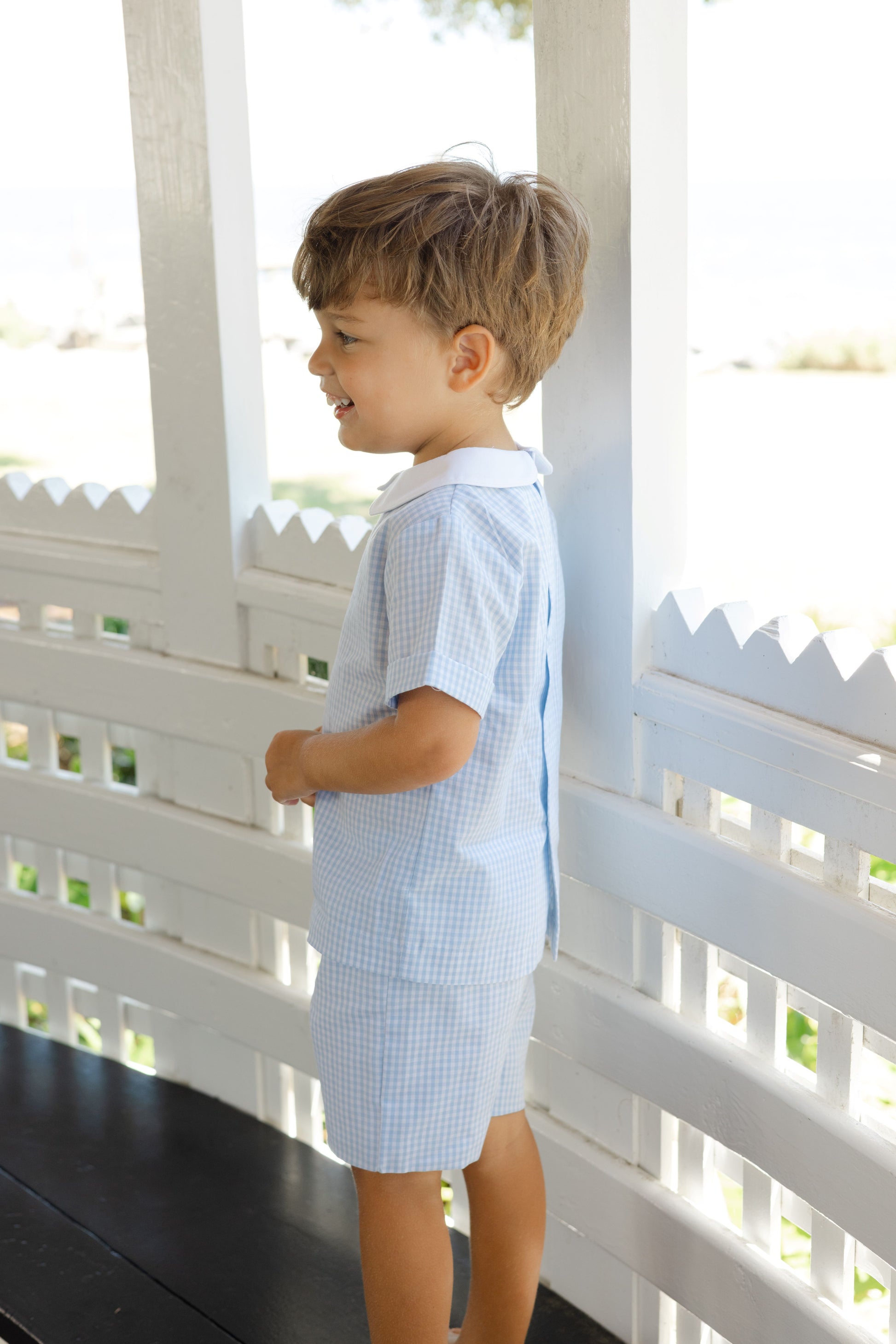 The Lt Blue Check Dressy Short Set is a refined blend of structure and comfort. Its crisp pattern and soft cotton texture create an elegant yet easy fit. Designed with a nod to tradition, it’s perfect for warm spring occasions.